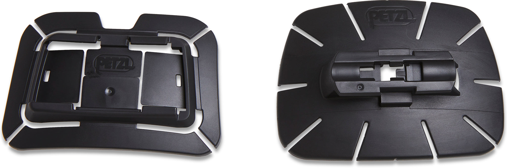 PRO ADAPT consists of two adhesive plates for mounting a DUO RL, DUO S, DUO Z1 or DUO Z2 headlamp on a helmet, and allows for tilting of the headlamp. The system is especially resistant to impacts and moisture.