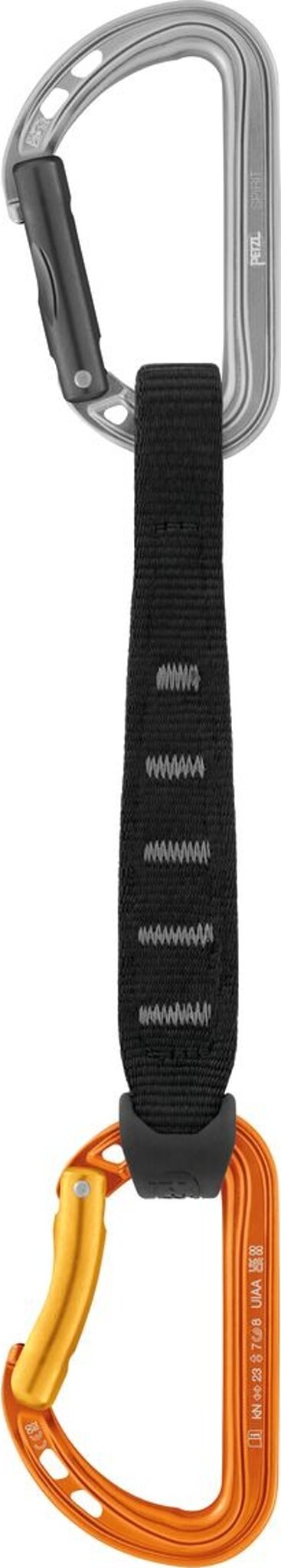 The benchmark for sport climbing and working routes! The SPIRIT EXPRESS quickdraw is lightweight, ergonomic, and versatile. The SPIRIT carabiners are designed to optimize use. The Keylock system helps prevent the carabiner from snagging when clipping and unclipping. Ergonomic, the EXPRESS quickdraw sling is the perfect shape to grab with your hand. The excellent weight-to-performance ratio allows you to adventure on different types of terrain like single pitch, multi-pitch, alpine rock, and ice. It is available in three lengths (11, 17, and 25 cm) to adapt to different uses and better manage rope drag.