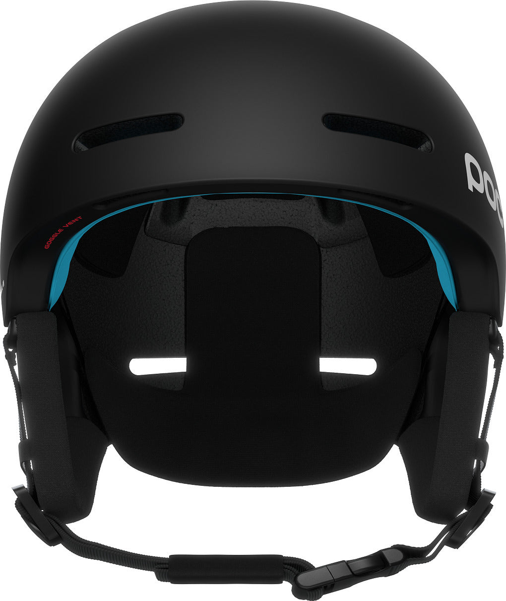 • Fixed goggle clip provides security and goggle chimneys allow steam to evacuate from POC goggles through the helmet.