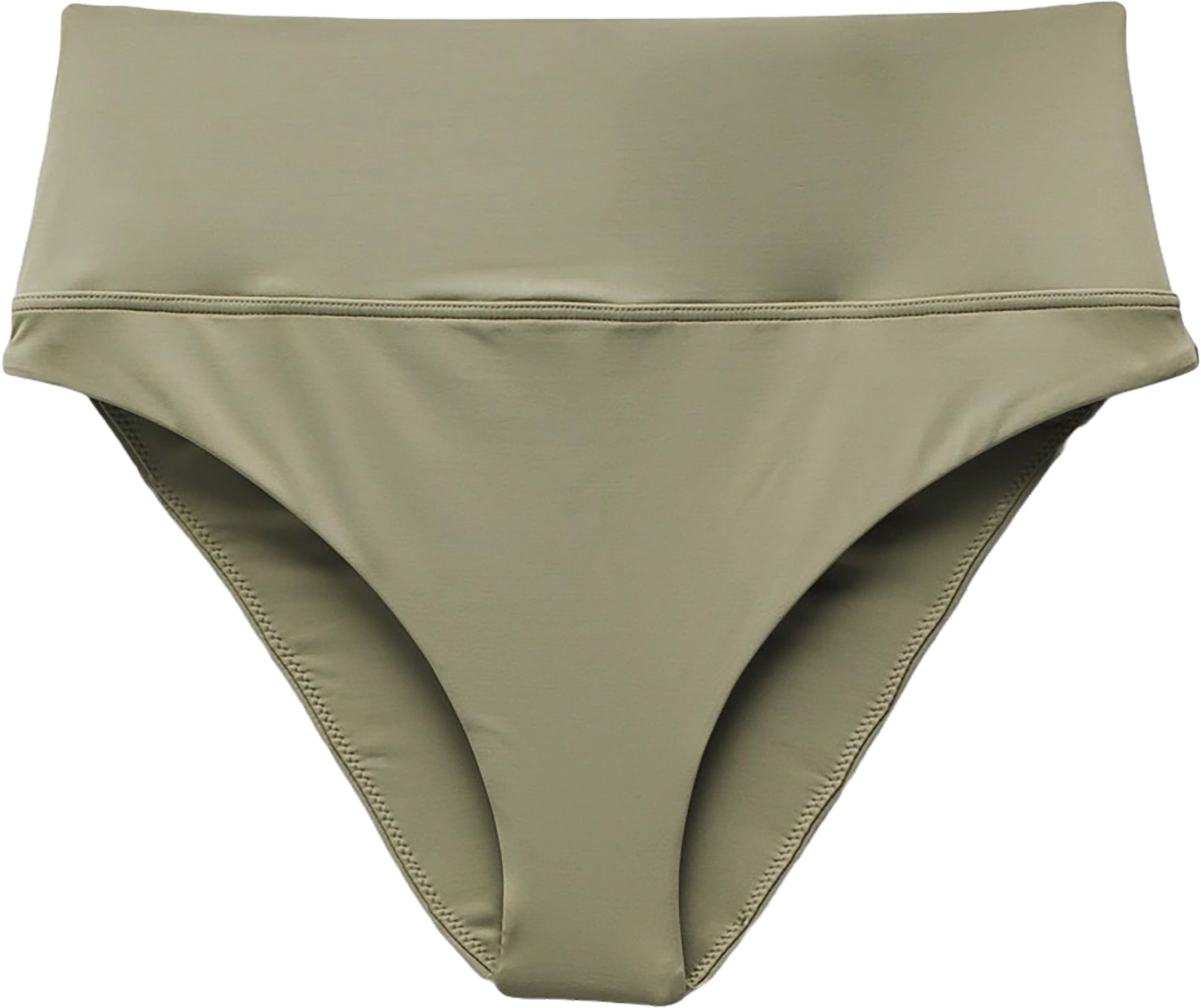 • Shirring detail on back pant • Clean finish seaming • Wide soft waistband with roll down feature • High rise • High leg cut • Cheekiest seat coverage • Quick dry • 4-way stretch • UPF 50+ • Fair Trade Certified™ Factory • 82% Econyl® Recycled Nylon, 18% Lycra® Elastane