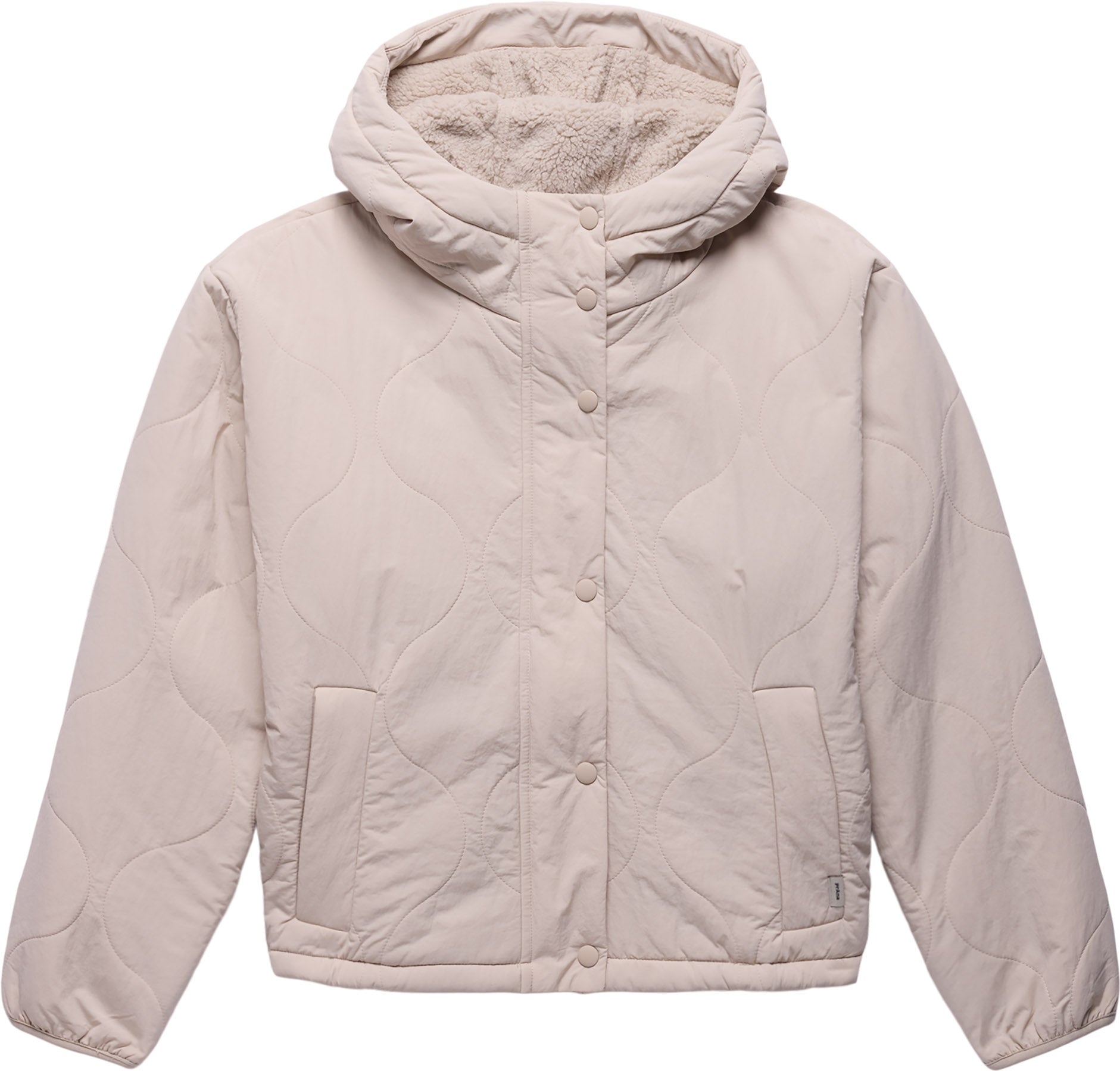 A quilted jacket with a cozy hood and toasty sherpa fleece lining.