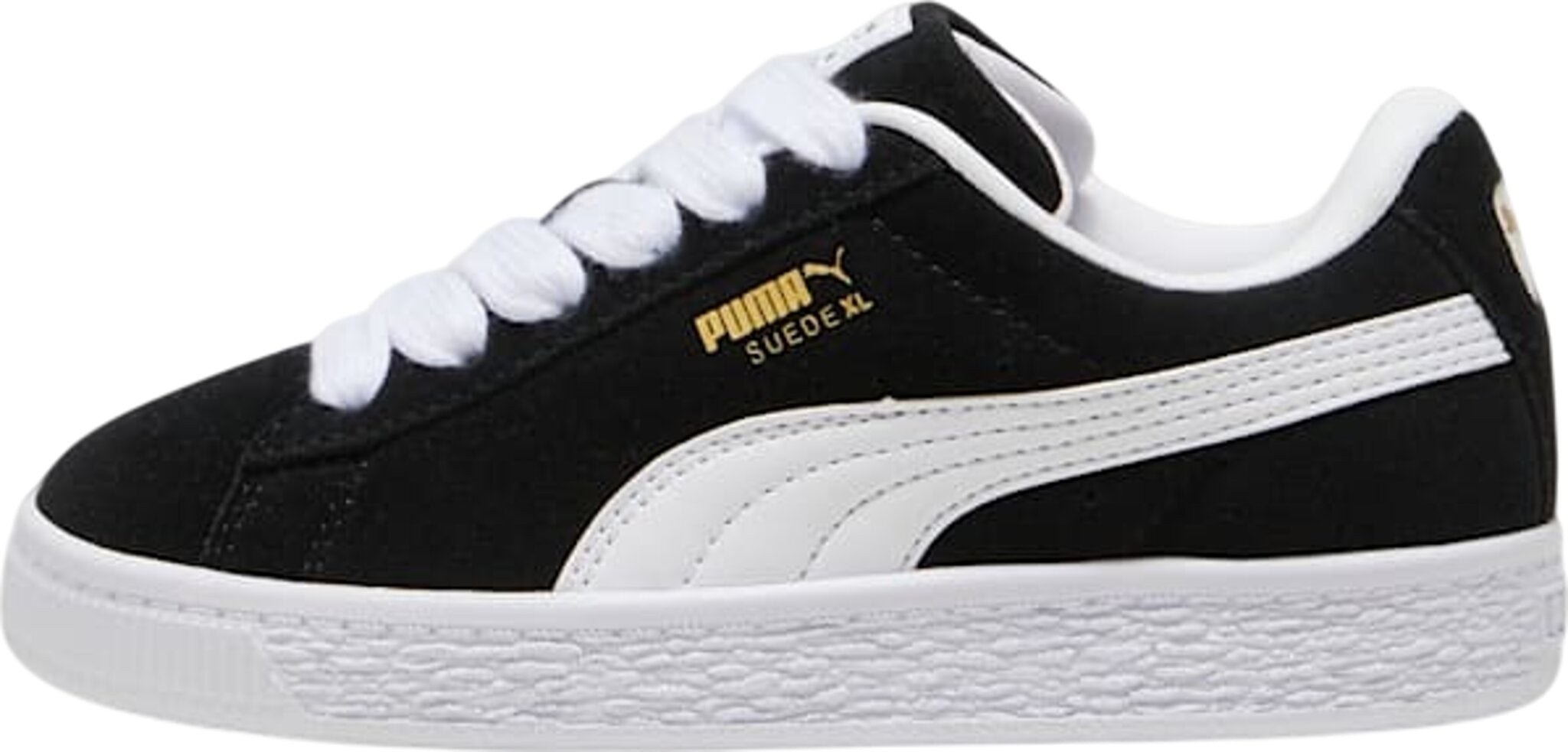 Features • Suede upper • Synthetic lining • Debossed and gold foil-printed Puma XL branding on quarter • Padded tongue and lining • Rubber midsole • Rubber outsole