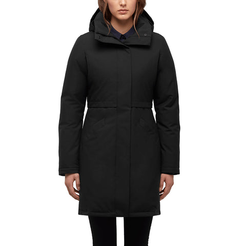 Quartz Co. designed the women's Dorset as a stylishly understated slim-fitting parka, which still retains a generous padding of their ethically sourced 650 fill Canadian White Duck down insulation. The Dorset's form-enhancing fit makes it a perfect parka for more slender builds, while its fashionable mid-thigh length cut provides ample protection during cold winter commutes and snowy resort town getaways.
