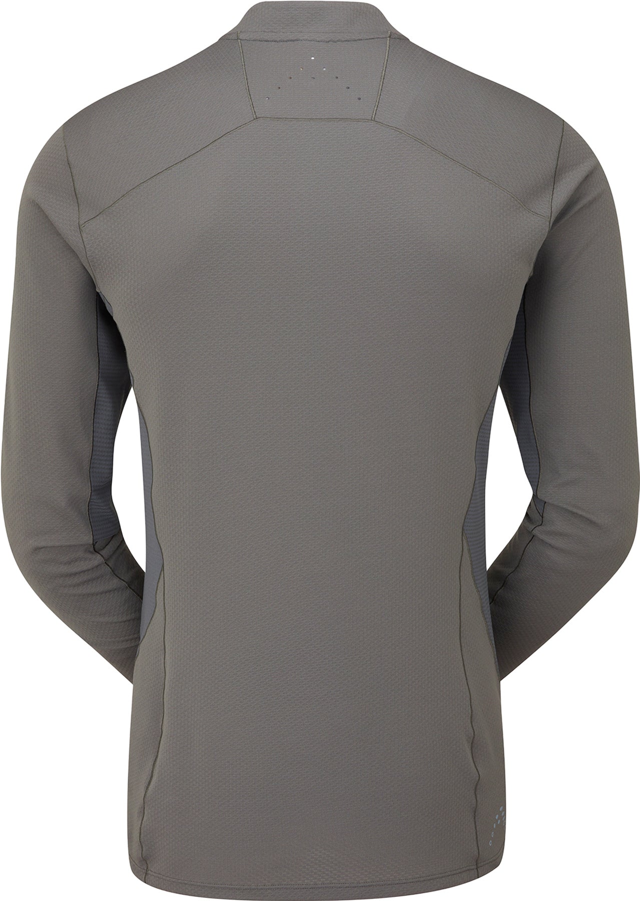 Mountain running through the coldest months demands gear that will keep you comfortable and protected, while managing moisture as you tackle the summit. Expertly balancing breathability and warmth, this go-faster baselayer is built with a combination of Motiv™ fabrics, body-mapped to effectively respond to your output and the conditions. An innovative technology uses recycled coffee grounds to increase the surface area of the yarn, allowing the tee to wick away sweat more efficiently and dry faster. Meanwhile ultralight underarm panels absorb odours, keeping you fresh on the boldest ascents and trickiest terrain. Laser-cut vent holes across the back of the neck and under the arms encourage airflow, along with the deep centre-front zip, which offers further ventilation on your most intense runs. The close-fitting collar has been designed with wind-lashed ridgelines in mind, keeping you comfortable and protected from cold winds.