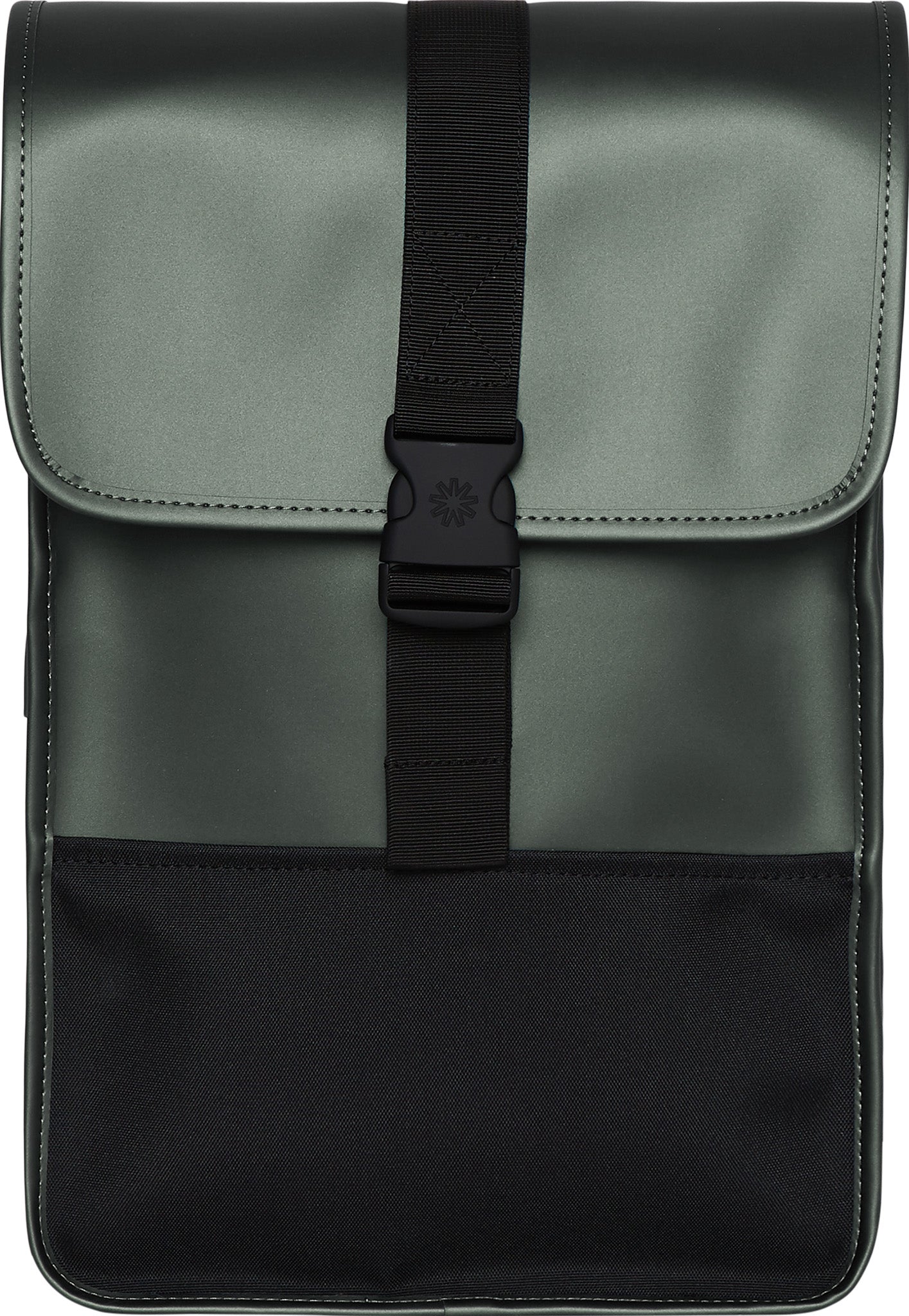 Buckle Backpack Mini is a bag taking design inspiration from Rains’ signature bag, Backpack. This sportier, more tech version features a webbing strap with a rubberized plastic buckle closure. A waterproof zipper is added to the top feeder of the bag, ensuring a tight seal. Made from Rains’ signature waterproof fabric on the outside, the interior boasts a laptop pocket and a spacious main compartment. Buckle Backpack Mini is finished with a padded backside and padded shoulder straps for comfort.