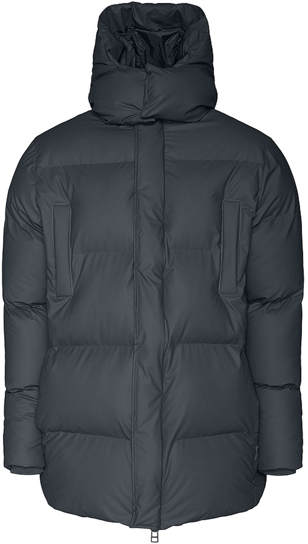 Hooded Puffer Coat is an insulated winter jacket from Rains' Thermal category, constructed from a breathable, yet waterproof PU fabric. Hooded Puffer Coat is designed with a straight silhouette and wide puffer chambers that are filled with a plant-based insulation. Rains' puffers feature an innovative approach to quilting via seamless chambers, woven from the backside to ensure a waterproof bond. Signature to Hooded Puffer Coat from Rains is a double collar effect, with the pairing of an insulated stand-up collar and an insulated hood. Lined in fleece, pockets are placed at the sides of the body, as well as at the chest.