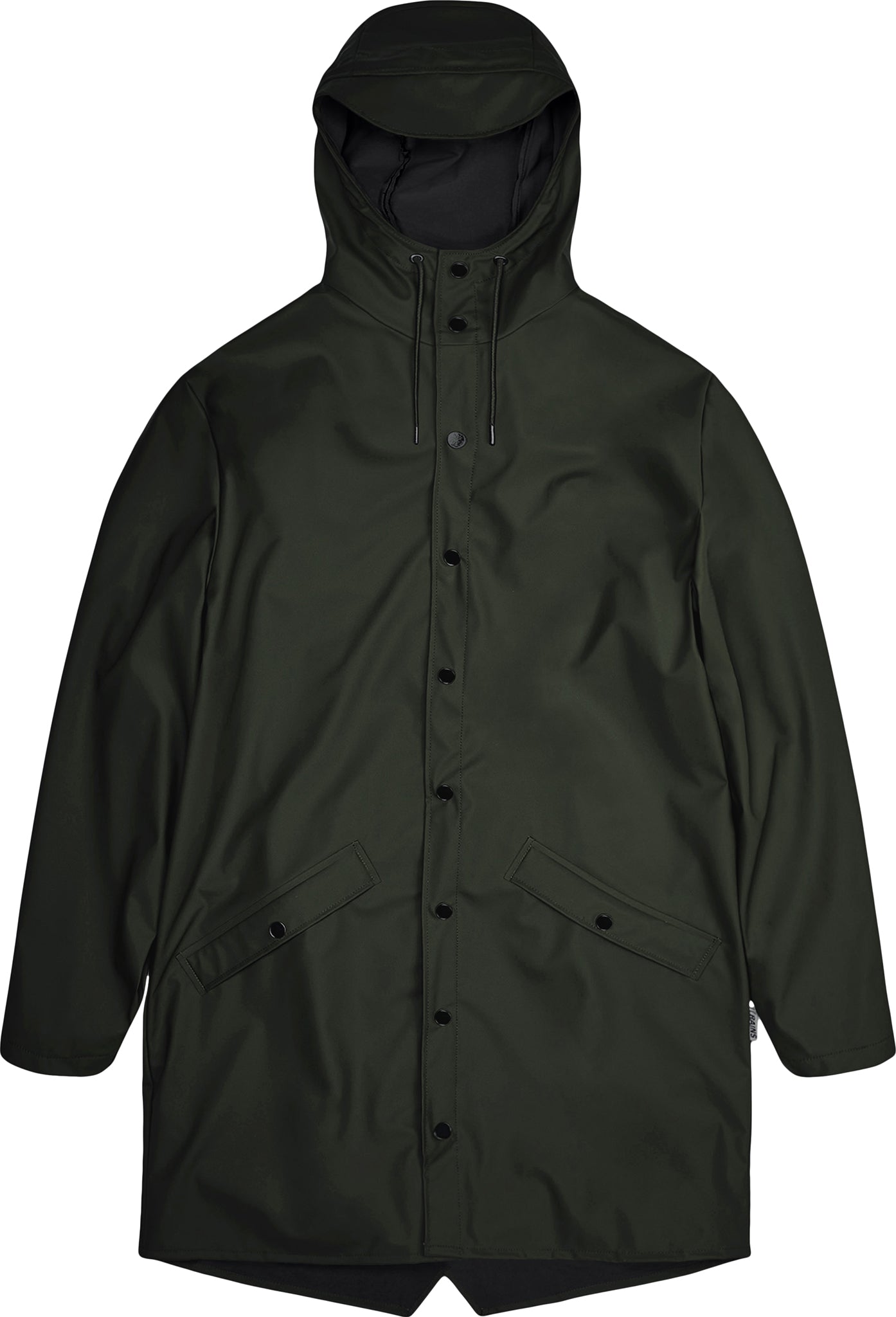 This ever-contemporary unisex rain jacket delivers high functionality in a minimal silhouette. Features include double welded slanting flap pockets, adjustable cuffs and a fishtail hem. The look is finished with snap fastenings, under-arm eyelets, and a back yoke with concealed vents. This waterproof jacket is cut from Rains' signature PU fabric and features ultrasonically welded seams. The finish is lightweight with a soft feel and elegant drape.