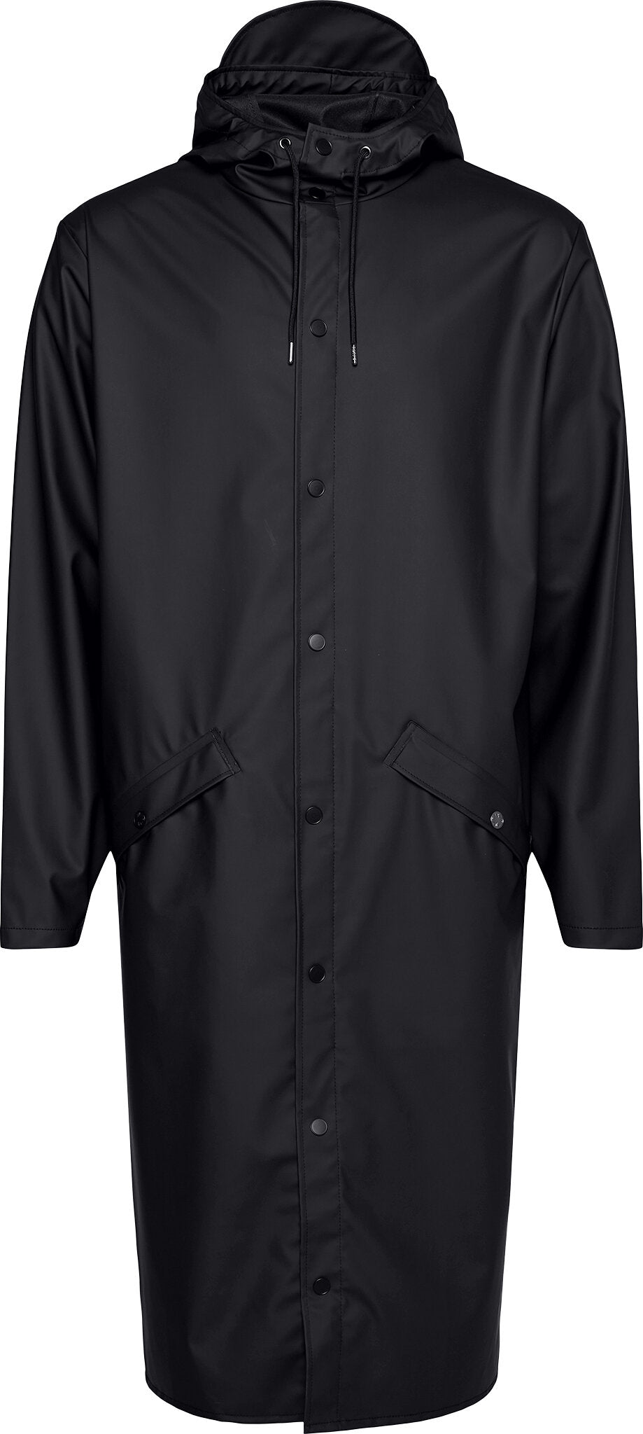 Longer Jacket is cut from Rains' signature PU fabric and features welded seams. The finish is lightweight with a smooth feel.