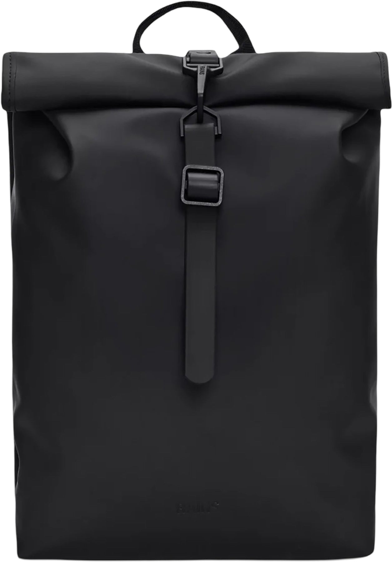 Rolltop Rucksack Mini is a dependable city staple perfect for commutes on bike or foot. The design interprets Rains' most iconic Rolltop Rucksack in a downscaled version. Rolltop Rucksack Mini is carefully designed to keep precipitation out when traveling from point A to Z. To protect essentials from rain, fold the rolltop into a tight scroll and secure using the signature carabiner. Open the rucksack to reveal a single main compartment. Exterior features include a padded air-mesh backpanel with a zip pocket. Rolltop Rucksack is cut from Rains' signature PU fabric engineered for carrying strength, durability and a smooth feel.
