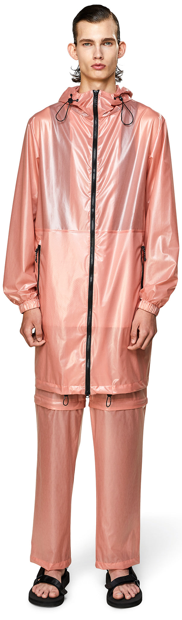 Ultralight Parka is a unisex raincoat with a casual fit and a slightly lower hemline for extra wet-weather coverage. The style features a weather-resistant zipper, ultrasonically welded seams and an adjustable hood with drawstrings at the front and the back for a custom fit. This style also features an elasticated backside at the waist and two double welted front pockets with waterproof zippers. Ultralight Parka is constructed from Rains’ signature ultralightweight fabric that is both waterproof and breathable. The unique fabric is achievable through an ultralightweight, knitted backside and a semi-shine, transparent PU surface. The combination results in a sheer, semi-shine fabric that’s nearly weightless when worn. Yet still waterproof.