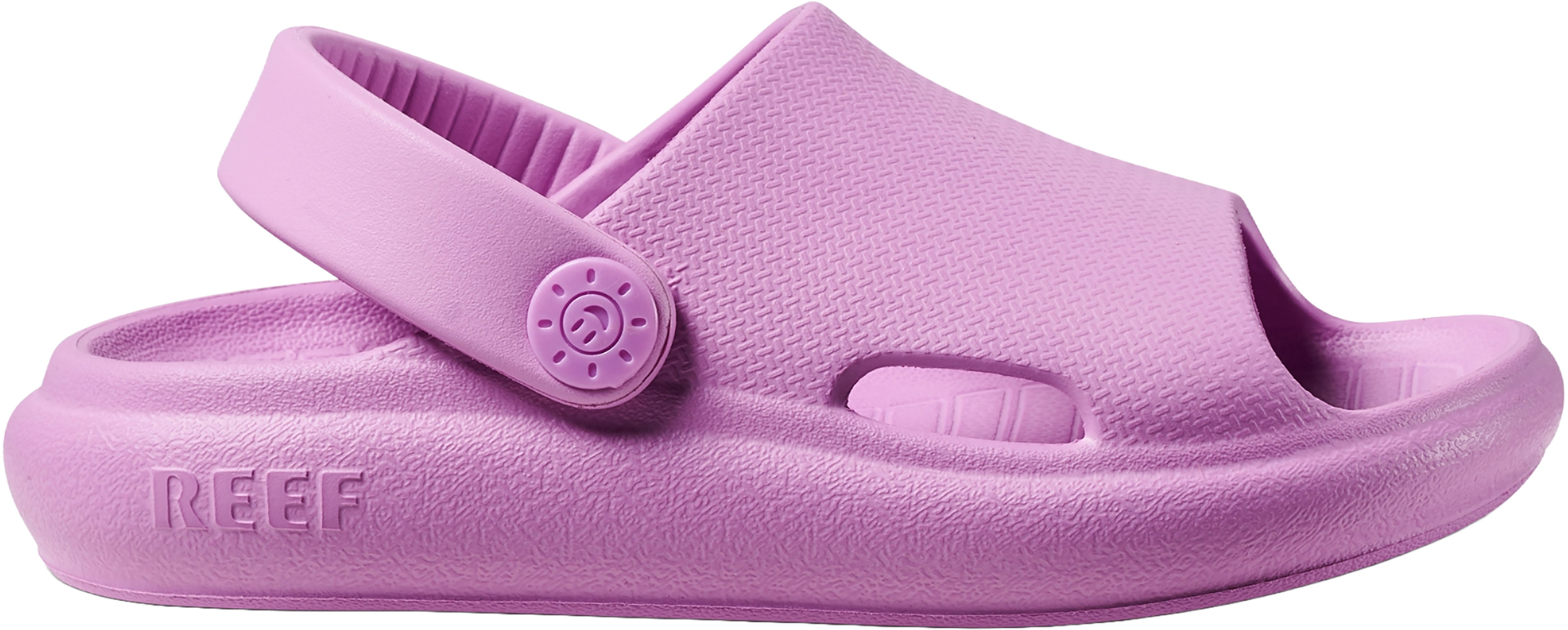 Super lightweight and ready for fun. The Little Rio Slide is designed with injected EVA that can be worn in and out of the water. Finished with a convertible strap and sunny embossed detail.