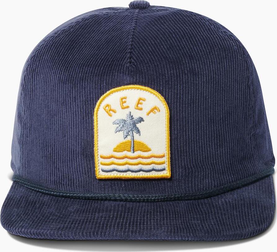 Feel like you are sitting under a palm tree with the Reef Tropical Hat. This cap has corduroy fabric, an unstructured fit with a mesh stay behind crown, and a snap back closure. It also has an embroidered patch with a merrow edge, and a flag label at back.