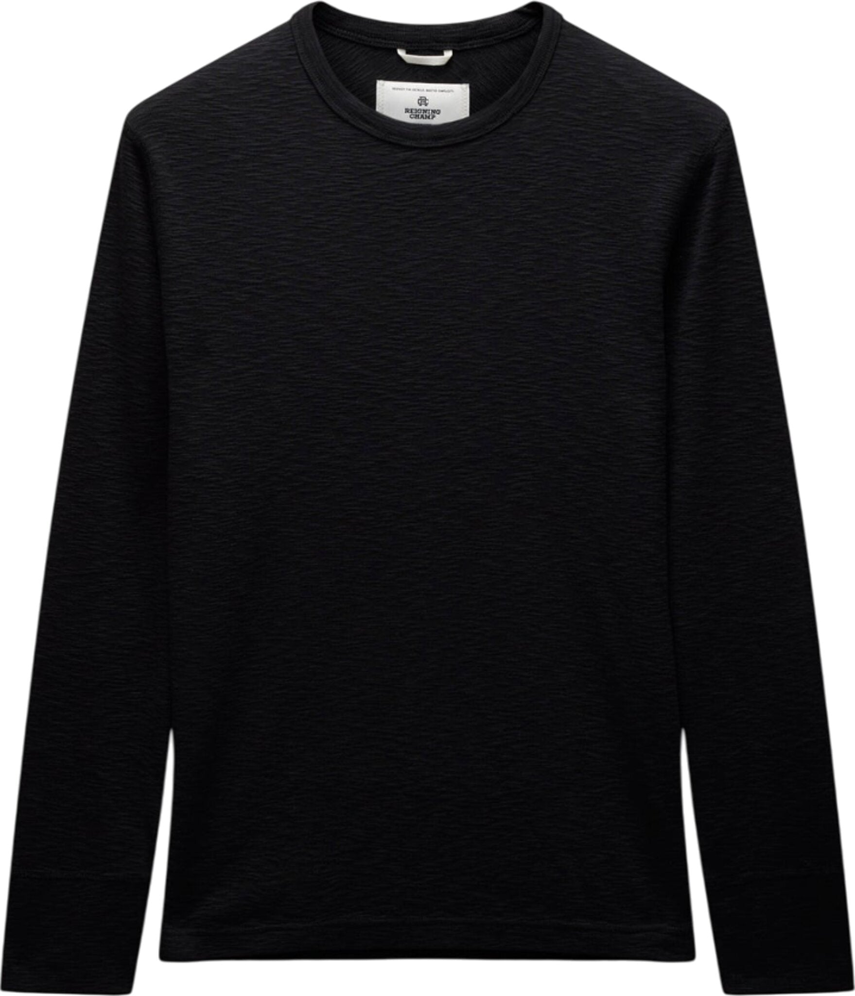 This slim-fit long sleeve, crafted from textured slub rib cotton, elevates casual wear with its distinctive look and feel. Designed with a fine rib-bound collar, signature flatlock seams, a flat hem, and rear shoulder yoke for added durability and structure.
