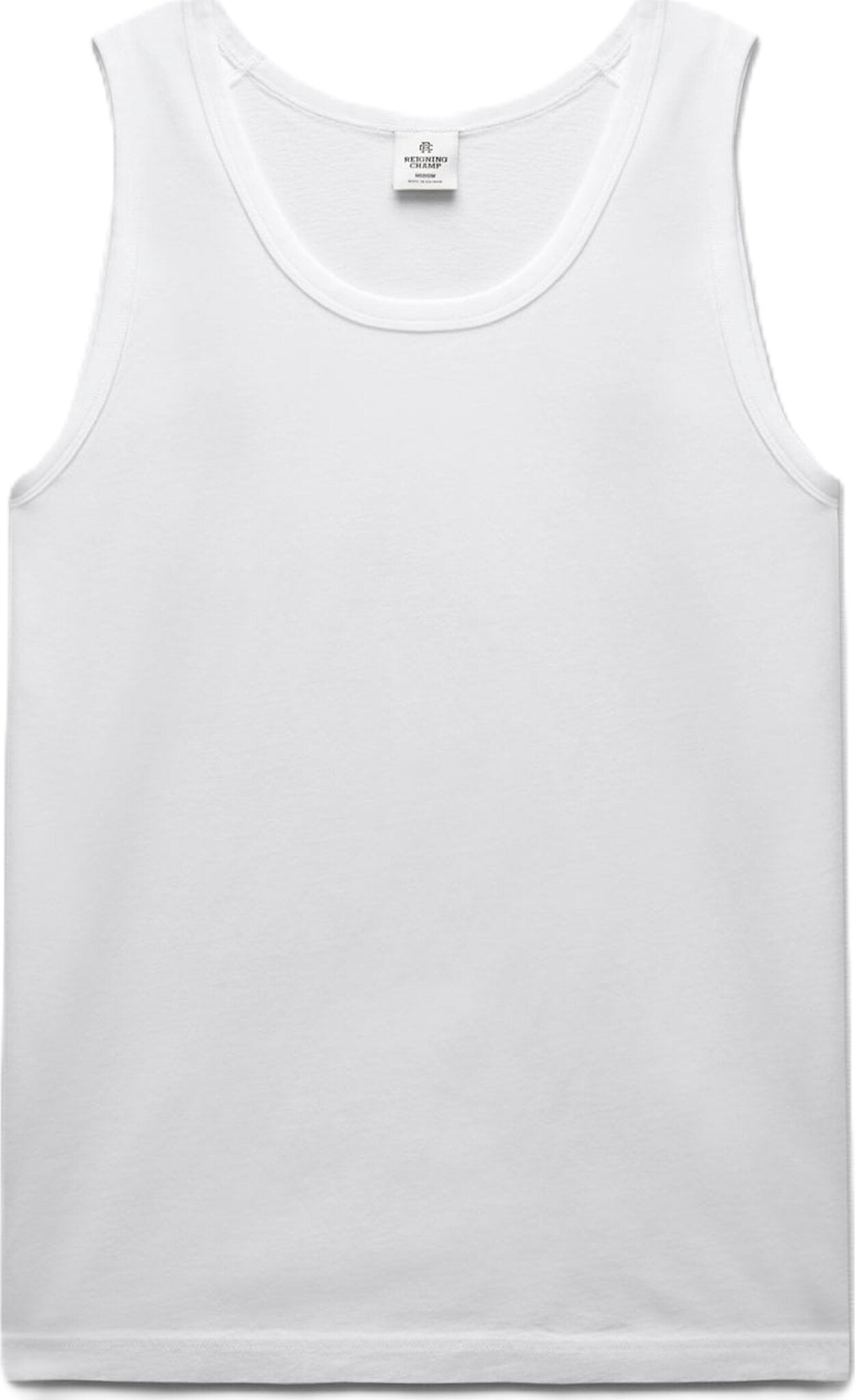 This tank top is crafted from premium cotton with a versatile year-round weight. Cut in a standard athletic fit with balanced proportions. Designed with a durable rib-bound collar and armholes, a scooped hem, and signature flatlock seams.