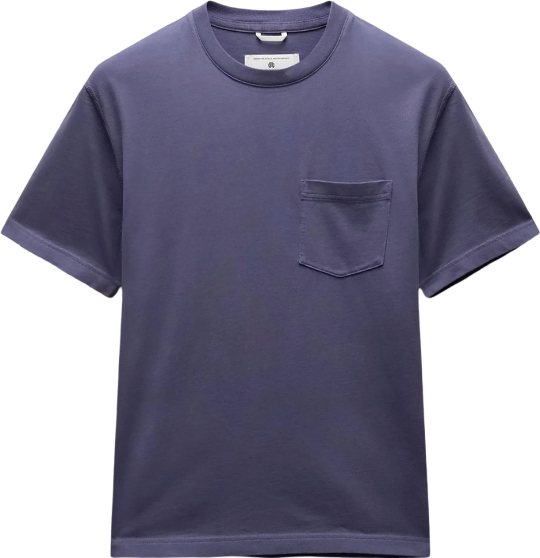Our midweight short sleeve pocket T-shirt is made from premium cotton, balancing substantial structure with a soft hand. Featuring a standard fit that tapers slightly from the chest to the waist hem. Designed with a wide rib collar, set-in sleeves, left chest pocket, and signature flatlock construction.