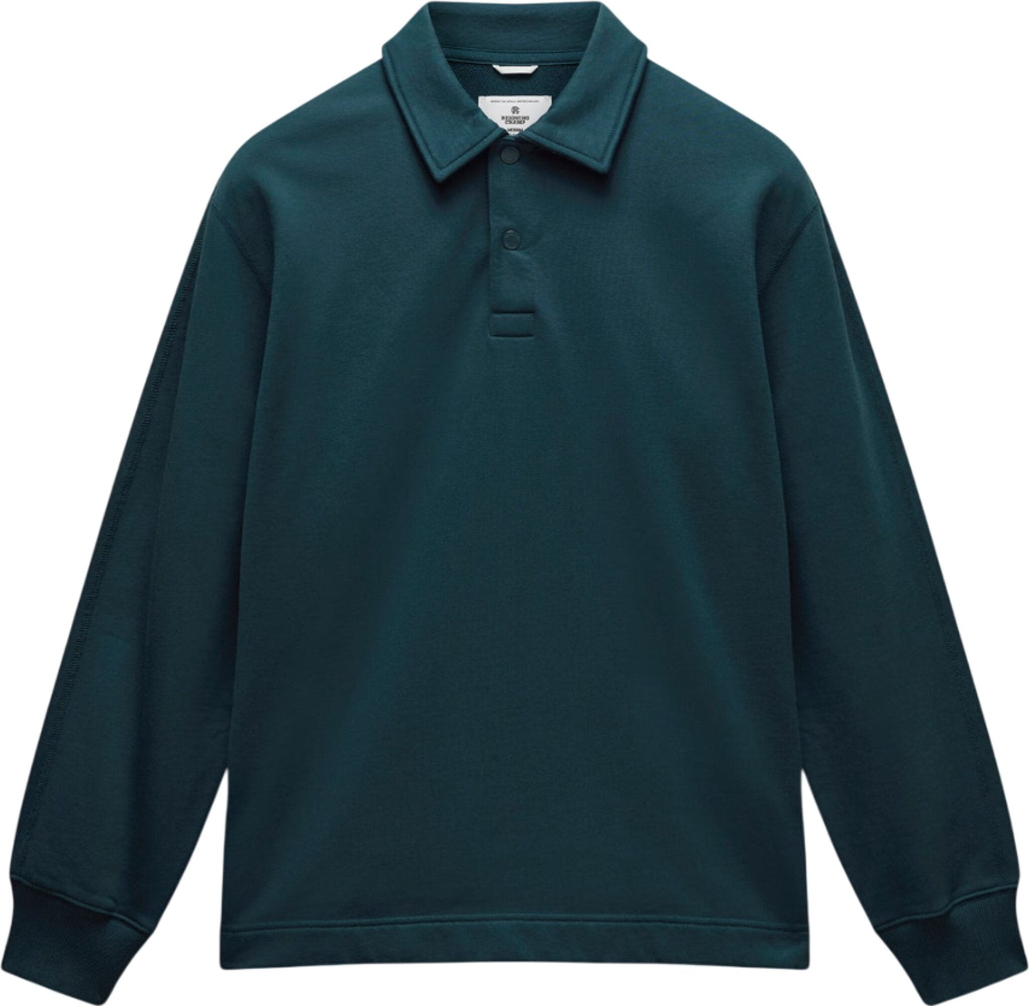 This collared rugby sweatshirt is made from premium Midweight Terry for an ideal balance of comfort and structure. Designed with metal logo snaps, a herringbone tape placket, semi-raglan sleeves, a side slit hem, and premium rib.