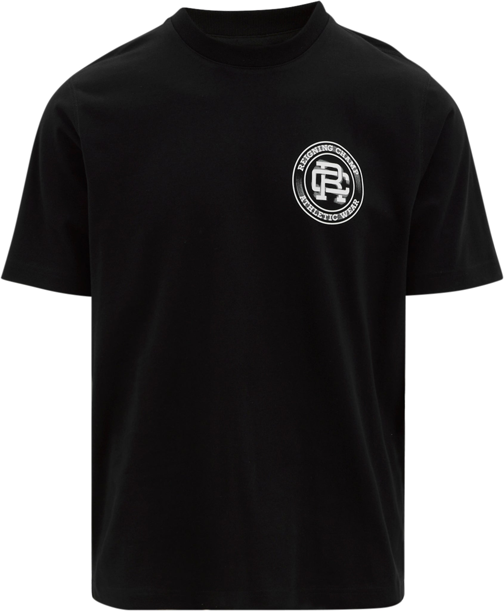 This graphic tee features a crest logo reimagined with a dynamic motion blur effect.