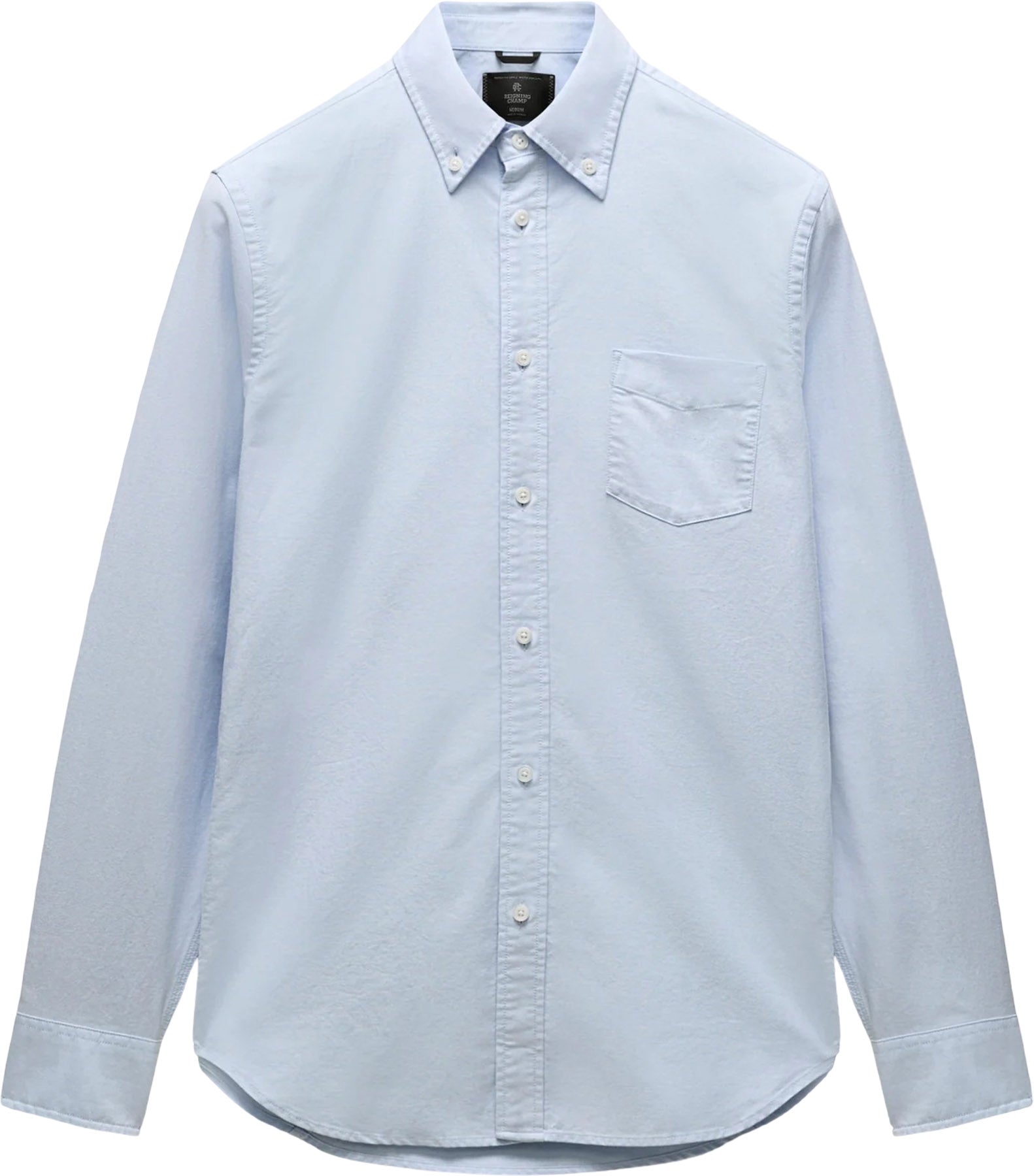 This button down shirt is crafted from classic cotton oxford in a versatile, year-round weight. Designed in a standard fit to complement all body types, with side gussets for a subtly tailored shape. Finished with faux shell buttons, a chest pocket, curved hem, and tonal monogram embroidery at the left cuff placket.