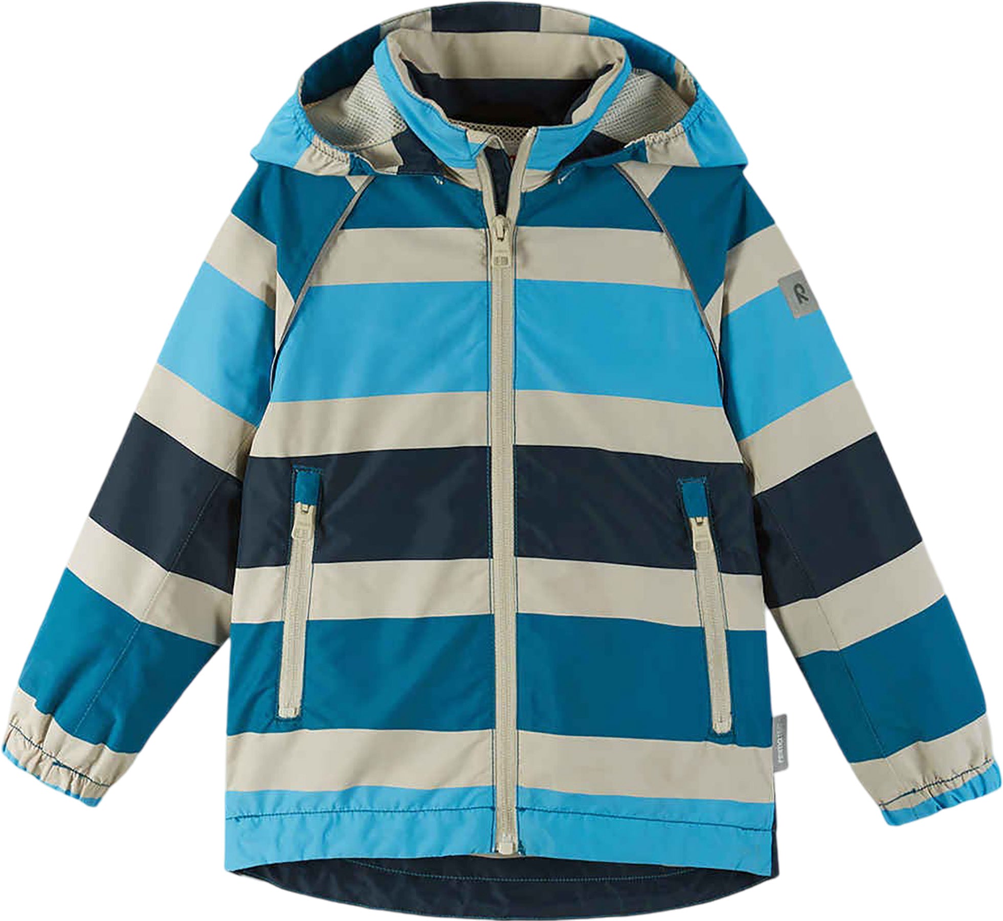 The kids' waterproof jacket Kallavesi keeps kids dry and comfortable during outdoor adventures. Its waterproof, windproof and breathable material shields from the elements. The lining in the jacket body is mesh, which supports breathability. The elastic cuffs and adjustable hem provide extra protection and the perfect fit, and the detachable hood comes easily off if it gets stuck on something. Two zip pockets safely store essentials. Reflective details increase visibility during times of low light. This light, long-lasting jacket is a great choice for fans of active outdoor play.