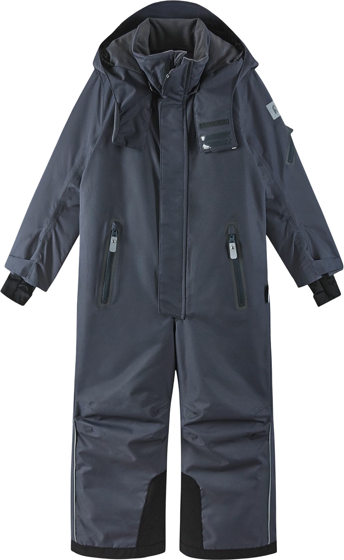 This waterproof ReimaTec kids' snowsuit comes with sealed seams to ward off wetness. It also has durable reinforcements on its hems for long-lasting use. Made from a windproof and breathable material, this functional design keeps your young stars of the slopes warm and dry without making them clammy. It has a smooth lining to ease dressing. The straight cut can be adjusted at the waist for a snugger fit. Adjustable cuffs and inner cuffs for added warmth top everything off. The detachable and adjustable hood not only protects from chilly winds but is safe when playing outdoors, too: Attached with snap buttons, it comes off easily if it gets caught on something. Two zip pockets, a skipass pocket on the sleeve and reflective details finish off the style to perfection. The material of this smart one-piece is dirt-repellent, but when it needs a wash, it can also be tumble dried. This is a bluesign® product, meeting the strict safety and environmental requirements of the bluesign® criteria: Made of bluesign® APPROVED fabrics and accessories and produced in a resource conserving way, with a minimum impact on people and the environment.