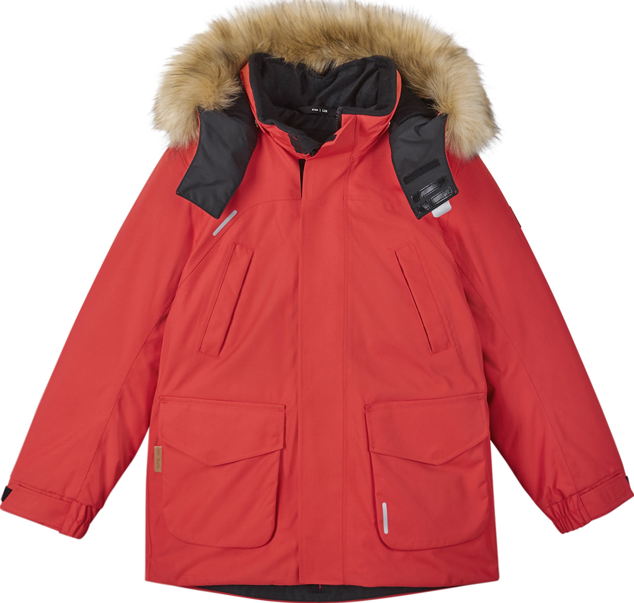 We Finns know from experience that children are delighted to inherit such a super warm coat from their favourite elder cousin. This classic is easy to accessorise to look new each season. The waterproof and breathable material and sealed seams have been an essential part of this parka style since the late 1990s. It got the classification Reimatec +, because it is waterproof and insulated with the finest down, certified to be ethically produced. That's why we are confident it will warm hearts, too. This style has all the practical details we require of our best jackets: Chin guard at zip end, a double storm flap at front, several pockets, a safe hood, the necessary adjustments, and a wonderfully smooth lining. You might think that a jacket only covers the upper body, but this one is designed to protect the face, too. The removable faux fur trim on the hood is more than a decoration as it keeps warm air around the face, diminishing the risk of frost bite.