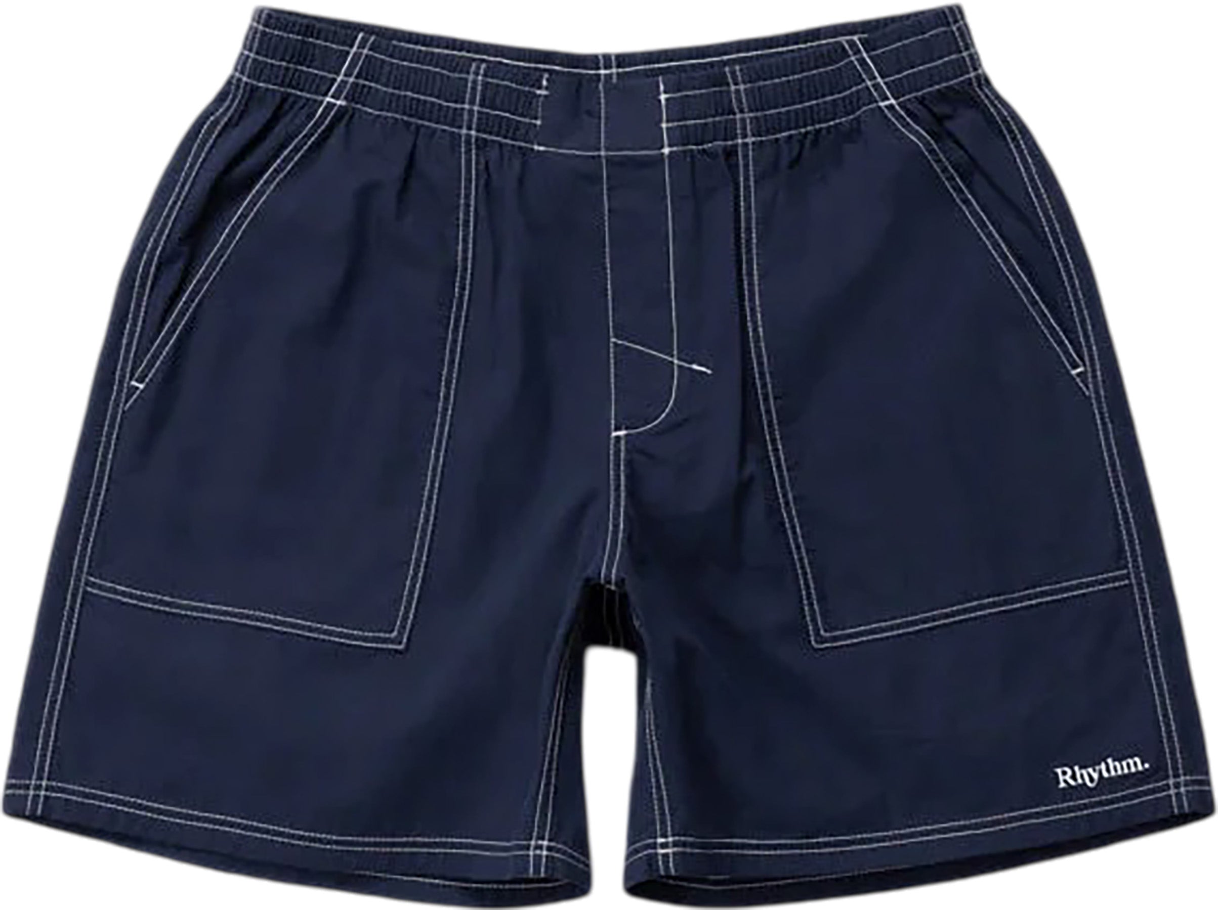 Elastic shorts with an internal drawstring, contrast stitching, and small embroidery detail. A perfect relaxed fit for coastal adventures.