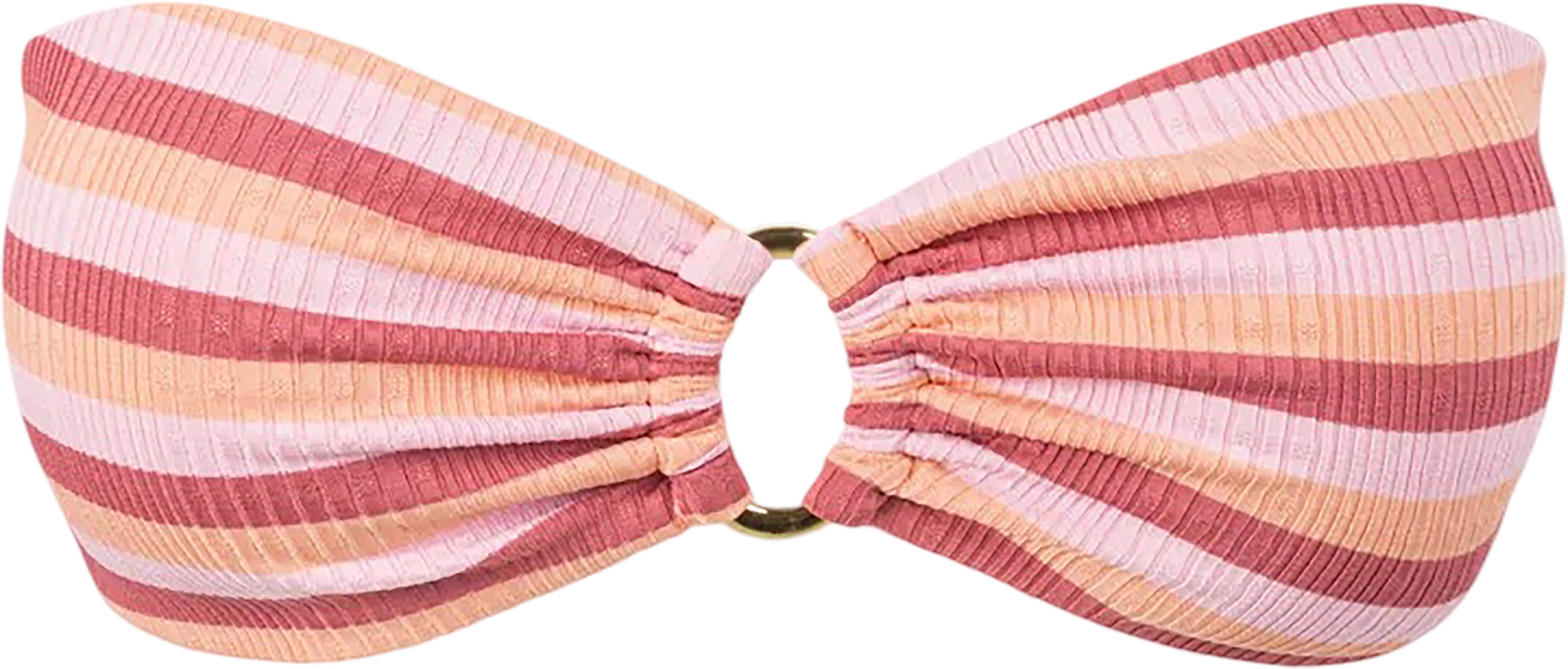 Elevate your swimwear game with the Ibiza Stripe Rib Bandeau Top in Pink. This versatile piece features a soft ribbed texture with a removable strap option for a tailored fit. A delicate metal ring adds a touch of elegance, making it the perfect blend of functionality and style for sun-drenched days.