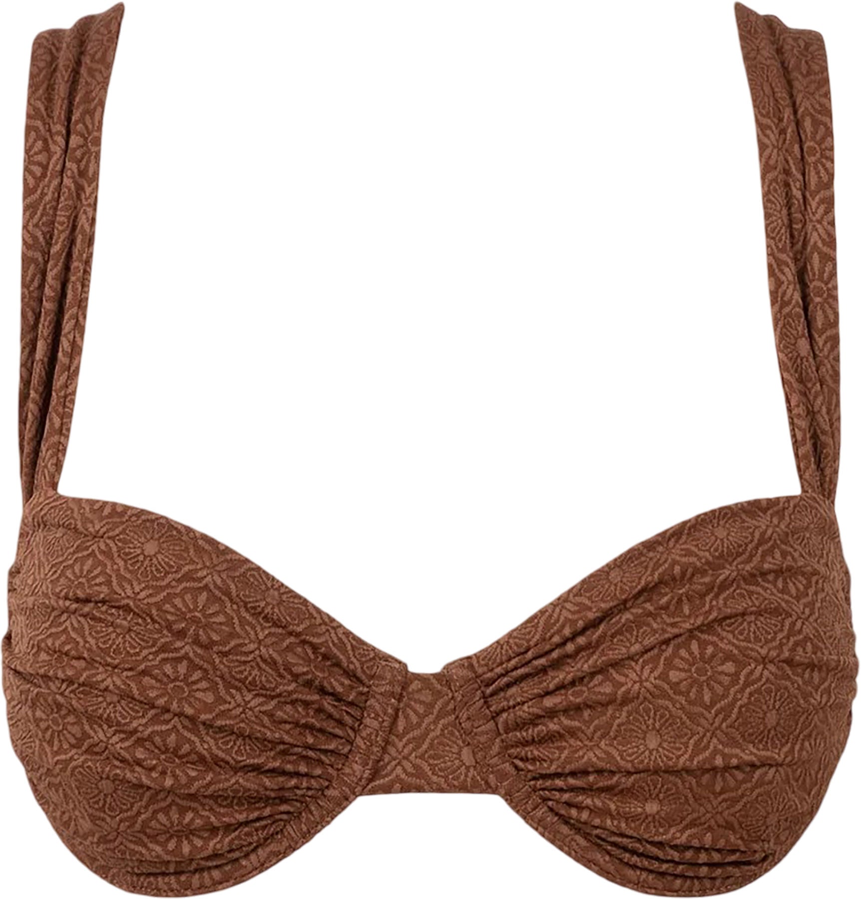 With a focus on comfort and style, the Sunset Soft Strap Balconette Top in Chocolate is recommended for A-D cup size. It includes wide soft adjustable shoulder straps, a tie back, gathered detail at the bust cups, and a branded back clasp.