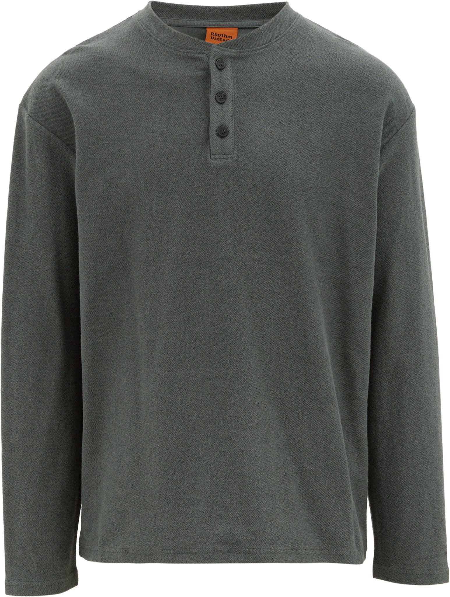 The Vintage Terry LS Henley in Silver Pine brings classic styling with a self-neck band and button-front closure. Washed for a vintage hand feel, it’s finished with Rhythm’s signature trims.