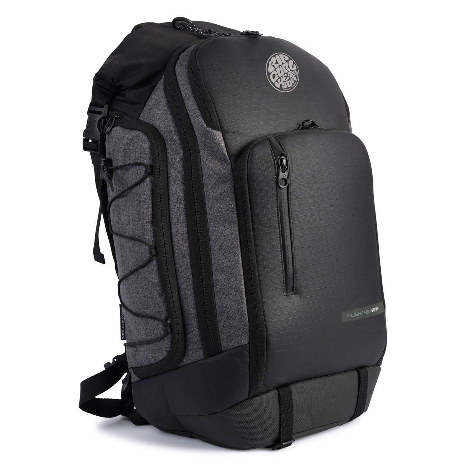 This is the Ultimate Surfing Backpack - Spacious and packed with features, the F-Light Surf Pack is custom built for your Search. At 40 liters, it has space for all your gear. The wet compartment is fully welded and waterproof with a roll-and-click top closure. Surf specific pockets store fins, sunblock, wax, and a large insulated side pocket will keep food and drink cold. Even your laptop and tablet have dedicated storage. The perforated dual density shoulder straps are breathable and lightweight, and a sternum strap helps fight shoulder fatigue. The 450D ripstop body and 600D molded EVA front panel make for an extremely lightweight and durable surf pack.