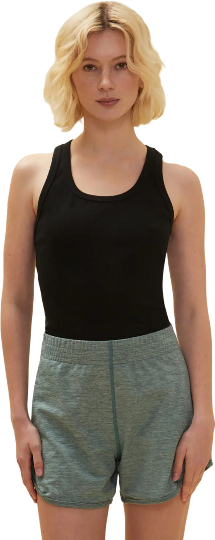 The Mile-End Tank Top now in a longer cut! This is your perfect layering piece, whether worn over sports bras or under your favorite sweater. This essential organic cotton ribbed tank features a scoop neck, racerback design and a slim-fitting cropped silhouette-a foundational piece for any capsule wardrobe.