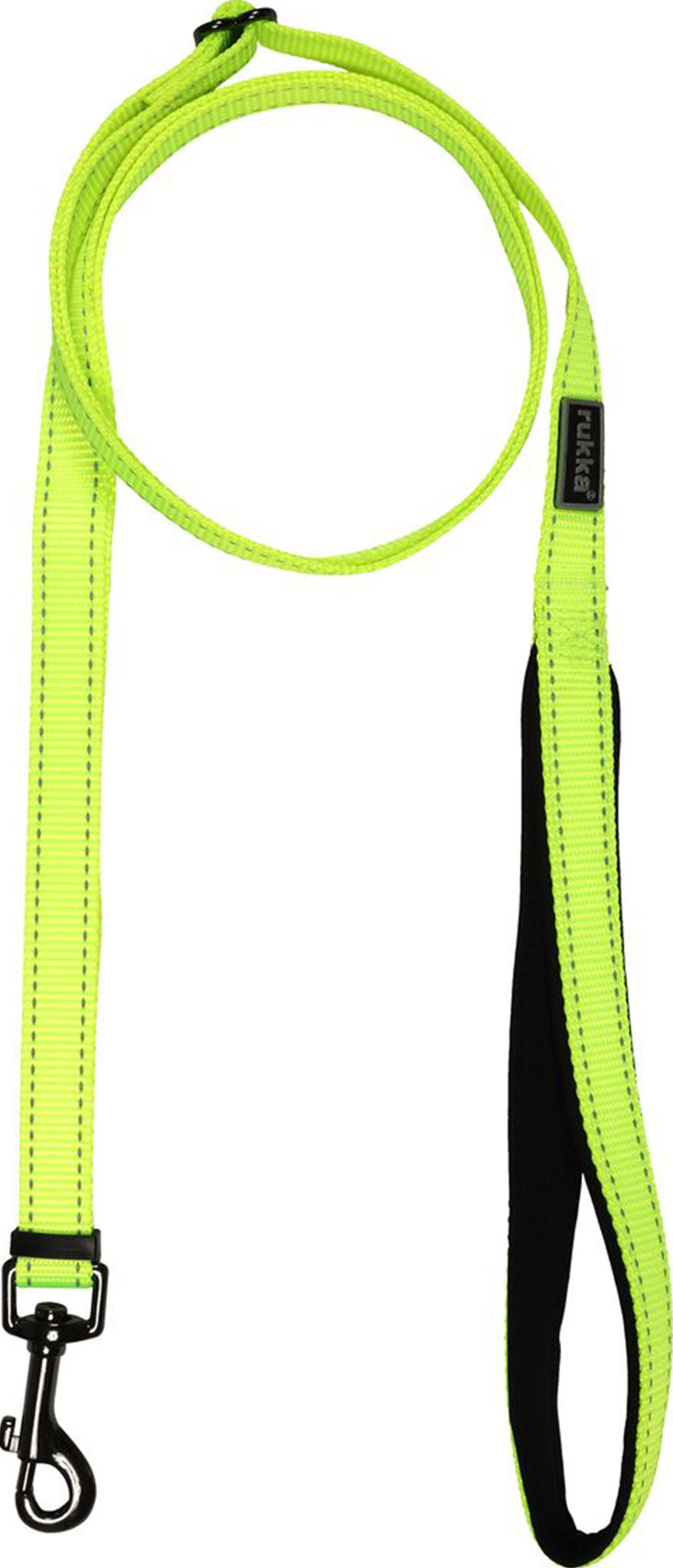 A durable neon-coloured leash to brighten up darkening evenings. The leash is adjustable in length from 1 to 2 metres, and it has reflective stitching and logo. A stylish gunmetal finish on all metal parts, including the durable rotating snap hook. The soft neoprene-lined handle feels comfortable and warm against the skin on cold days. The machine-washable leash dries fast and is easy to keep clean. Please note that neon colours might fade eventually, and if exposed repeatedly to moisture, colours might bleed, too. To a white or light-coloured dog, we recommend choosing a collar or harness from our other styles.