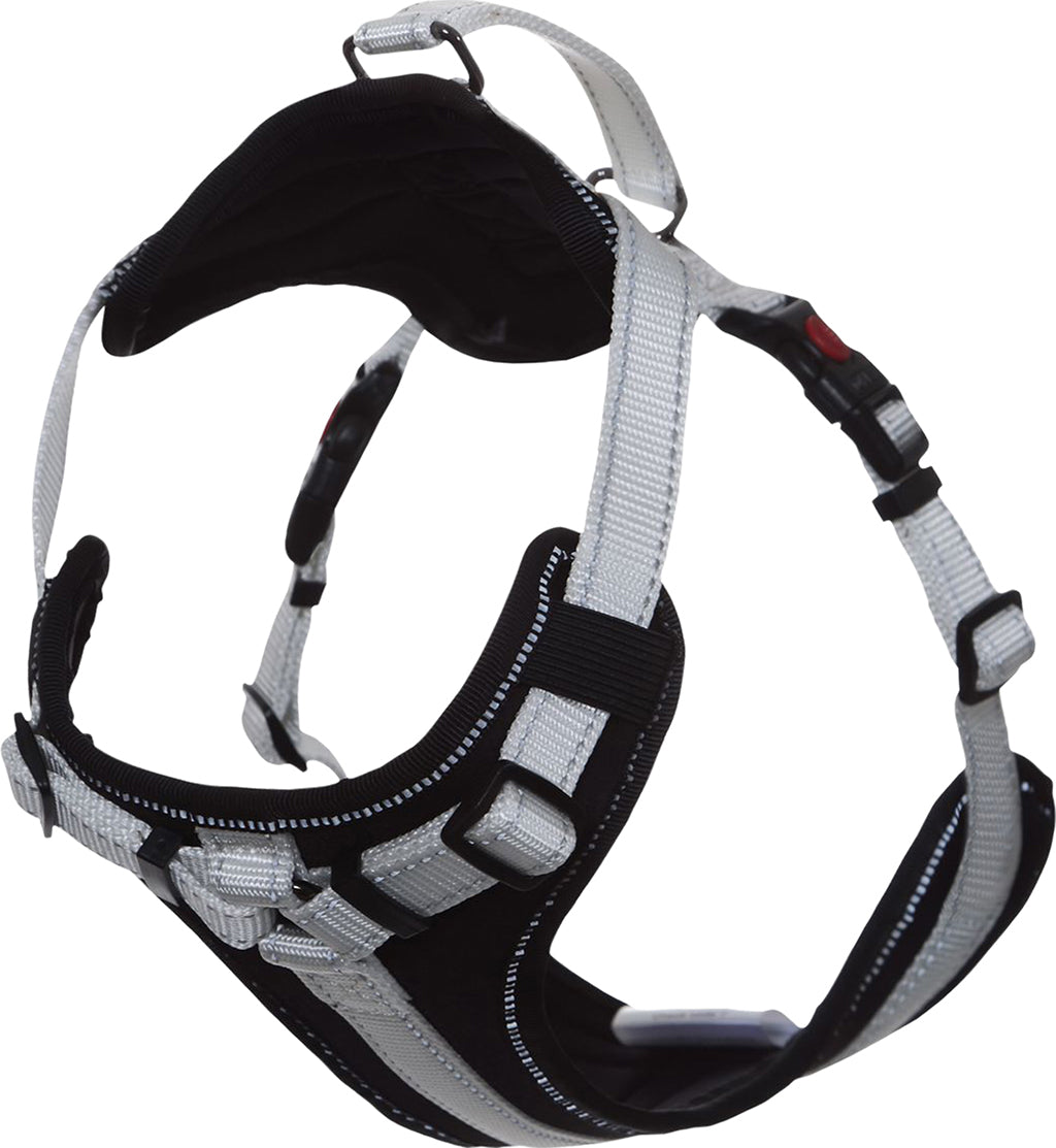 The harness comes with adjustable neckline and chest, which ensure that the harness fits well. Thanks to the two quick buckle closures, the harness is fast and easy to put on. The wide chest part of the harness feels comfortable against the dog and distributes the pressure equally across the dog’s chest. A wider chest part to ensure that the harness stays in place in all conditions, also in activities of higher intensity. There is a grab handle on the back for extra control of the dog in demanding situations. Thanks to the adjustability, the comfortable and durable harness is suitable for a puppy, too. The machine-washable harness has reflective stitching and logo.