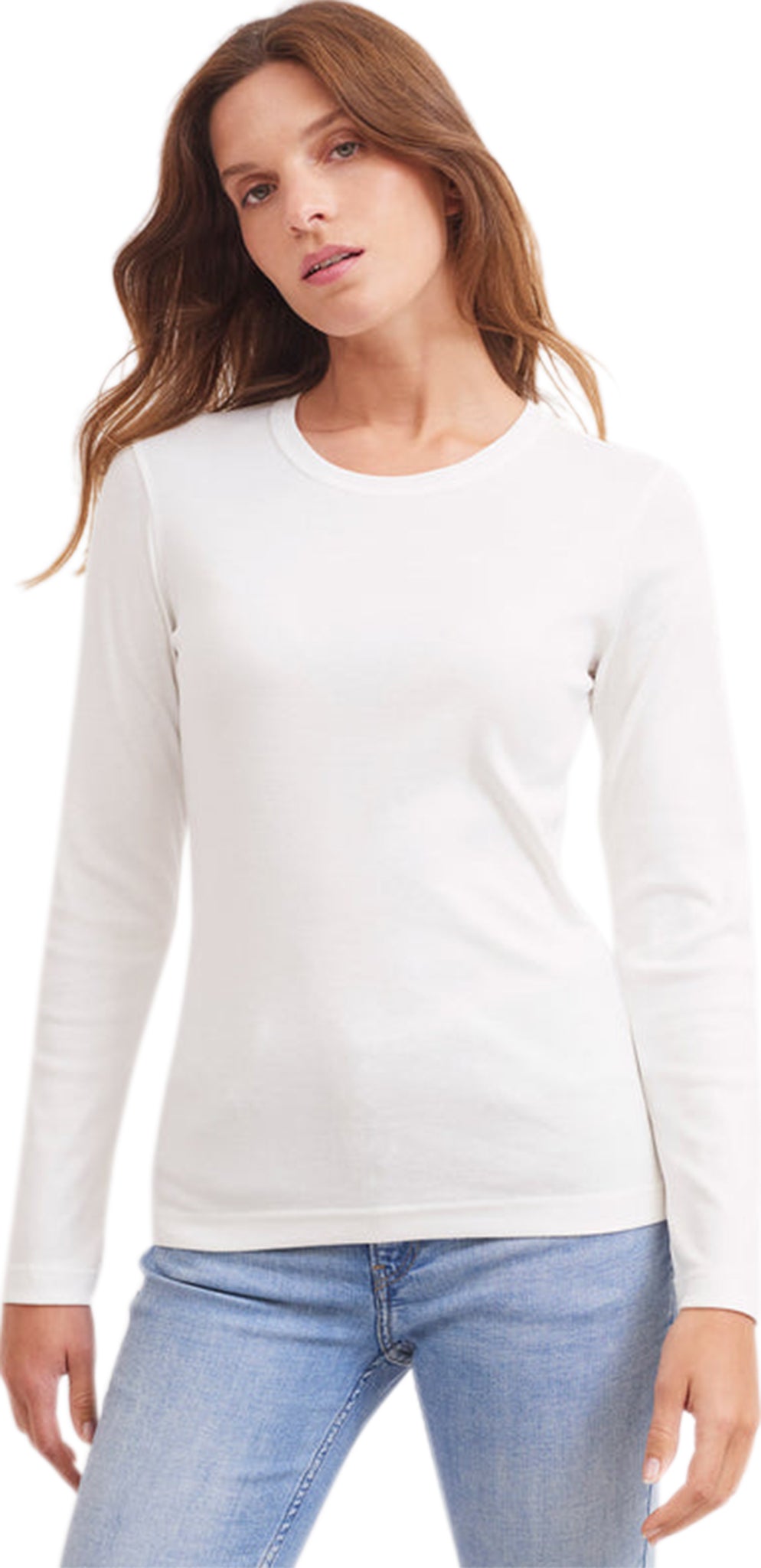 The women’s CELINA U Long Sleeve T-Shirt in a 100% rib 1x1 weave is a wardrobe essential. This long sleeve t-shirt features a casual, round neck for comfort with any layer. A print Saint James logo is painted on the left sleeve.