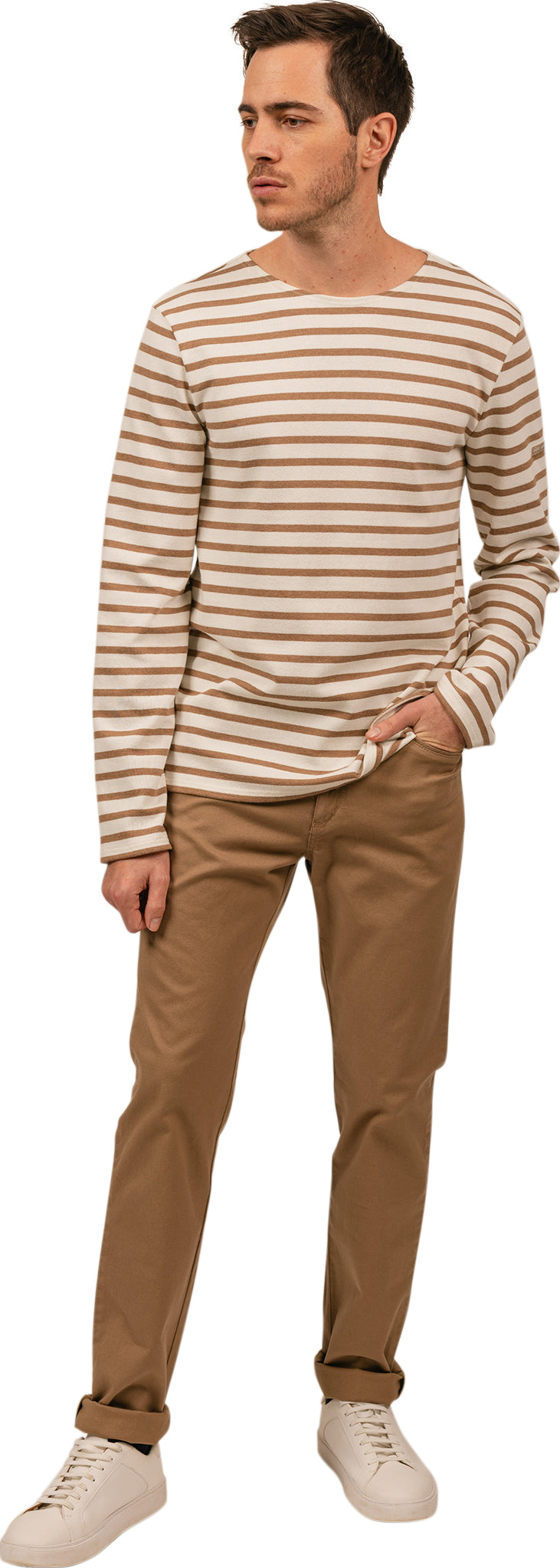 The MERIDIEN MODERNE Breton Top by Saint James in heavy cotton is an essential basic, qualifying as a hybrid between a sweatshirt and long sleeve. It’s made of 100% carded cotton in a heavyweight jersey knit. Saint James proudly manufactures all sweaters in Normandy, France. This all-season top is suitable for men and women alike thanks to its straight shape and regular fit.