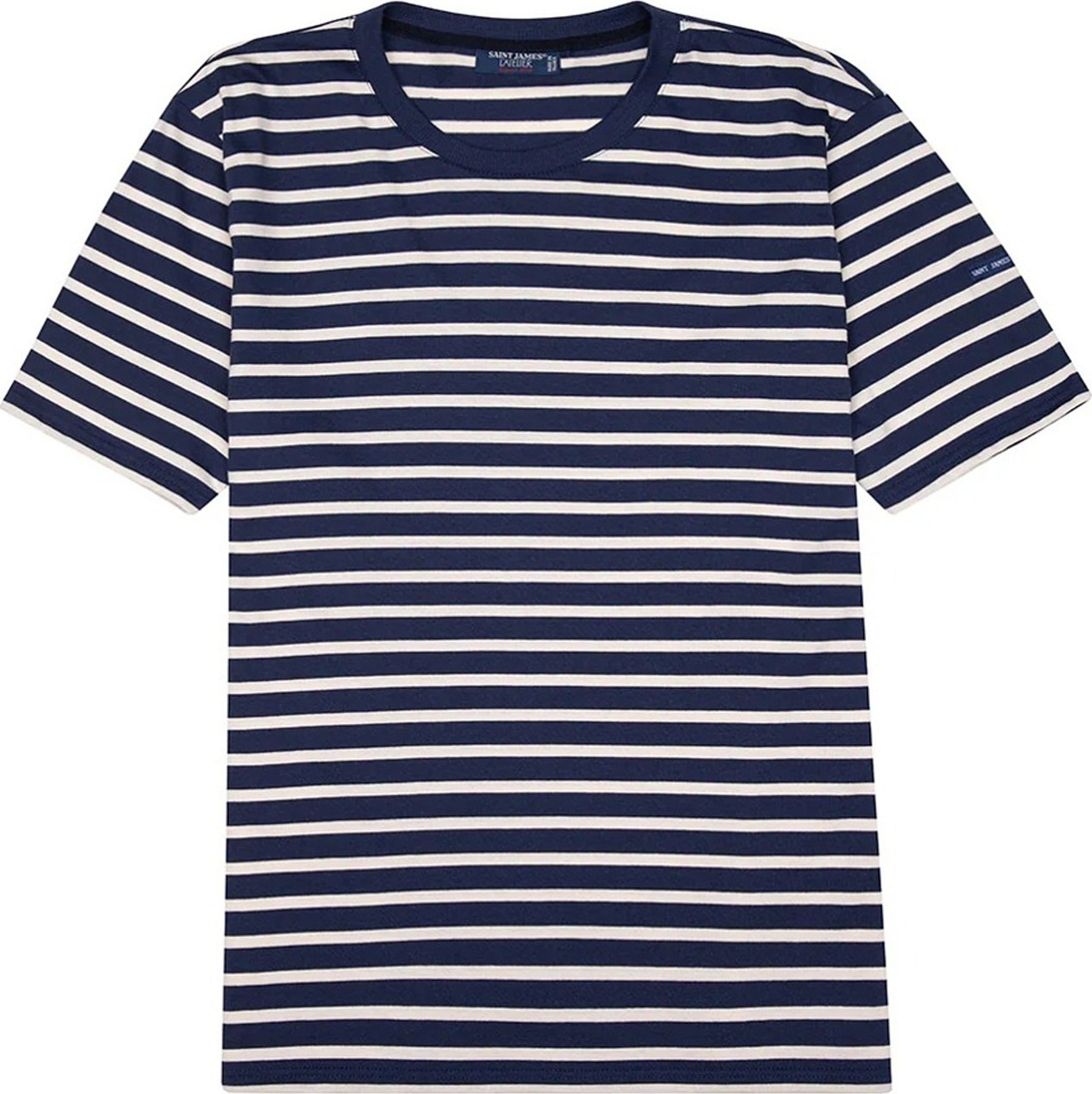Striped jersey t-shirt, rib trim round neck in tone-on-tone, short sleeves. Contrasting piping on neck.
