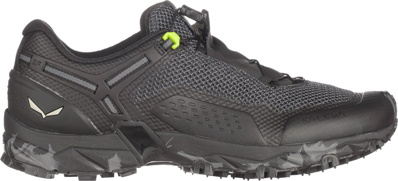 The men’s ULTRA TRAIN 2 hiking shoe fulfils your need for speed whether hiking or mountain training. Salewa and Michelin teamed up to create the Ultra Train outsole, featuring sticky Michelin Outdoor Compound X for wet and slippery surfaces. An Ortholite footbed cushions your foot and wicks moisture away. Motion guidance tech in the midsole keeps you moving naturally and securely. A strong and seamless upper wraps around the midfoot for a better fit. 3F technology offers superior flexibility, fit and support. Stretch gaiters keep debris where it belongs – on the trail and in your dust.