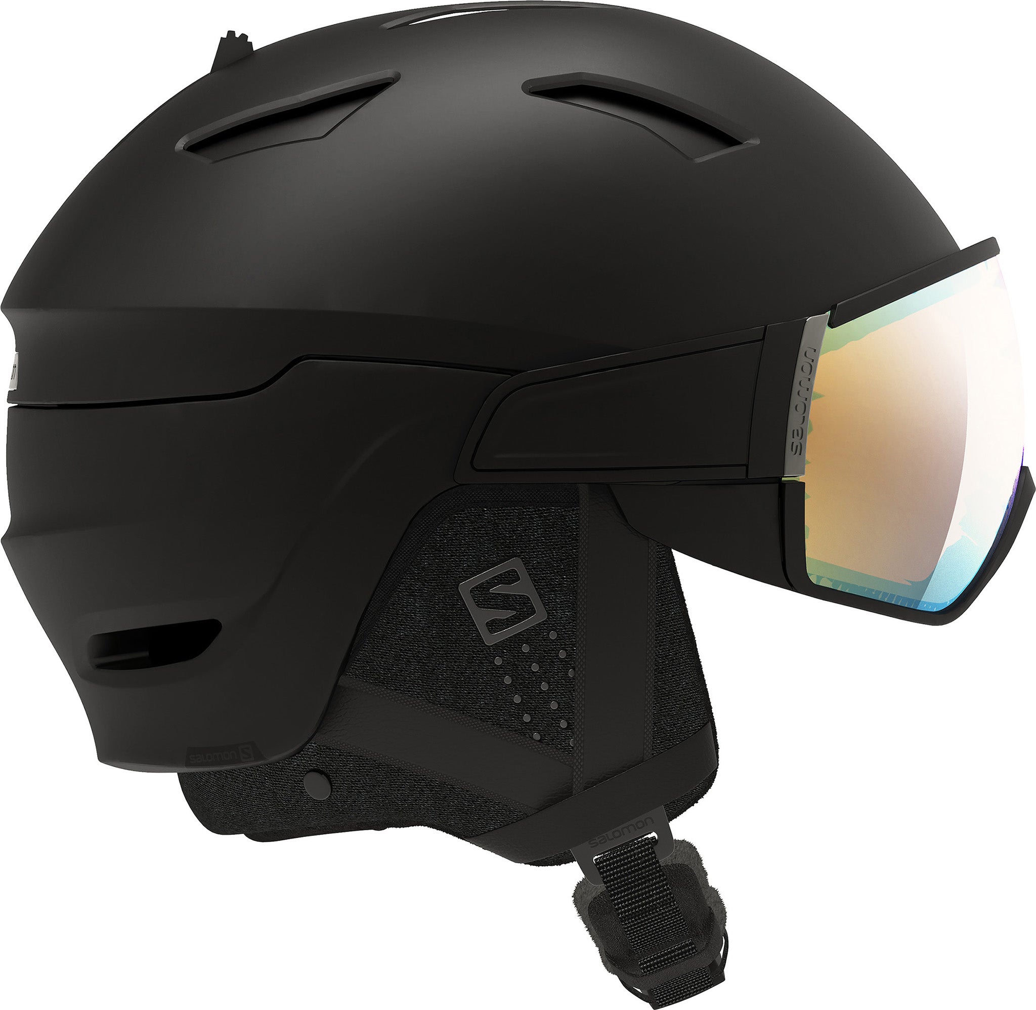 • Amplified terrain contrast: Salomon’s first visor helmet fitted with our exclusive photochromic Sigma™ lens which dynamically adjusts to changing light conditions and offers heightened color contrast