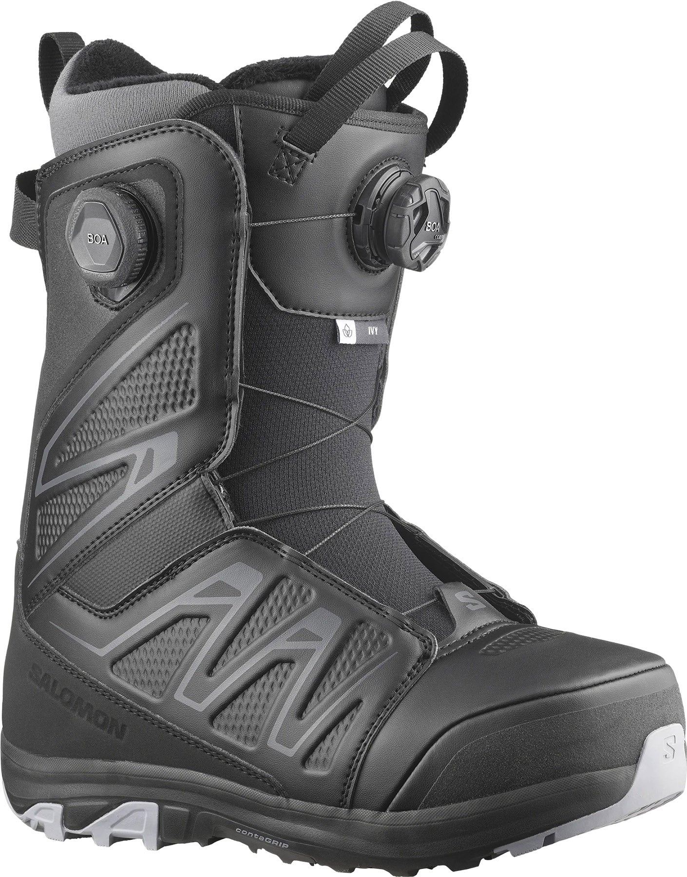 The Ivy Boa® SJ is a versatile women’s boot with modern design lines inspired by iconic Salomon footwear. With a medium flex for a variety of riding styles, the Ivy utilizes premium materials and our Fit To Ride construction, ensuring instant and lasting comfort, along with our Boa® activated STR8JKT harness for superior heel hold.