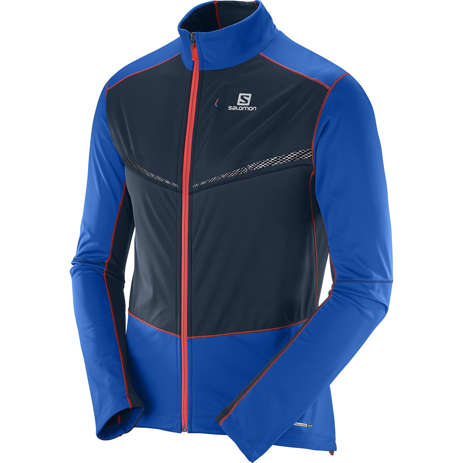 Details : • Concept/Technology : MotionFit / SMART SKIN™ / AdvancedSkin Shield • Fabrics : Softshell 3L • Fit : Active fit • Sleeve : Articulated Sleeves / Stretch Cuff • Hem : Hem adjustment • Zip : Ergonomic Zip / Full zip • Pockets : 1 back pocket / 1 zip chest pocket • Visual Aspect : 360° Reflective Treatment • Composition : Back: PA 79%, EL 21% • Back Insert: PES 100% • Front: Inner Shell PES 100%, Outer Shell PES 100% • Weight (g) / Size : 390