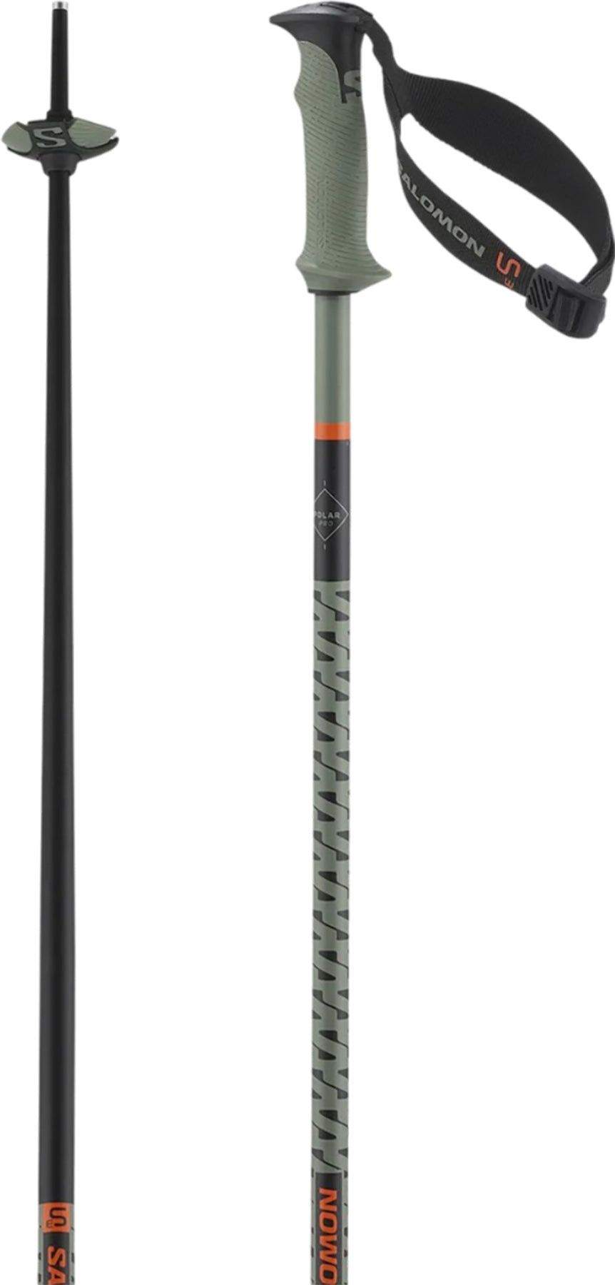 Designed for skiers seeking stylish poles to complement their gear, Salomon's Polar Pro S3 poles combine a sleek design with a safety release S3 strap, as well as an interchangeable all-mountain basket for convenience and versatility.
