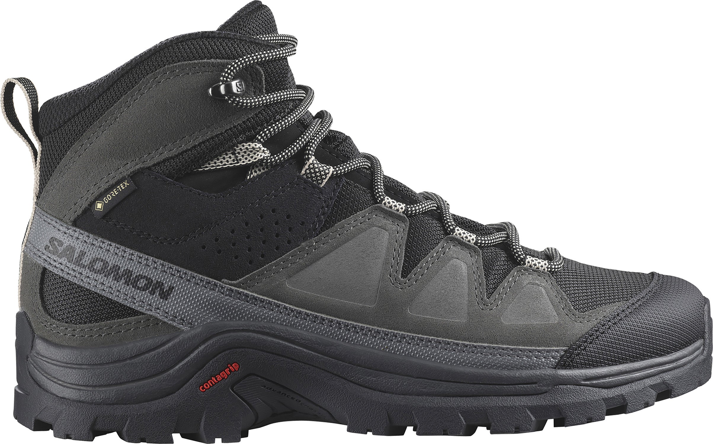 Features • Best for: Multi-day routes, Backpacking, Mixed trails • Height: Mid • Lacing system: Regular laces • Waterproofness: Gore-Tex • Backpacking specific: Designed for stability and comfort with a heavy pack to equip you for any adventure • Outdoor protection: An intrepid combination of waterproof Gore-Tex, reinforced toe cap, robust leather and grippy Contagrip® • Reliable performance: This Shoes is made for the long haul with full leather, Gore-Tex and a proven Salomon bottom unit