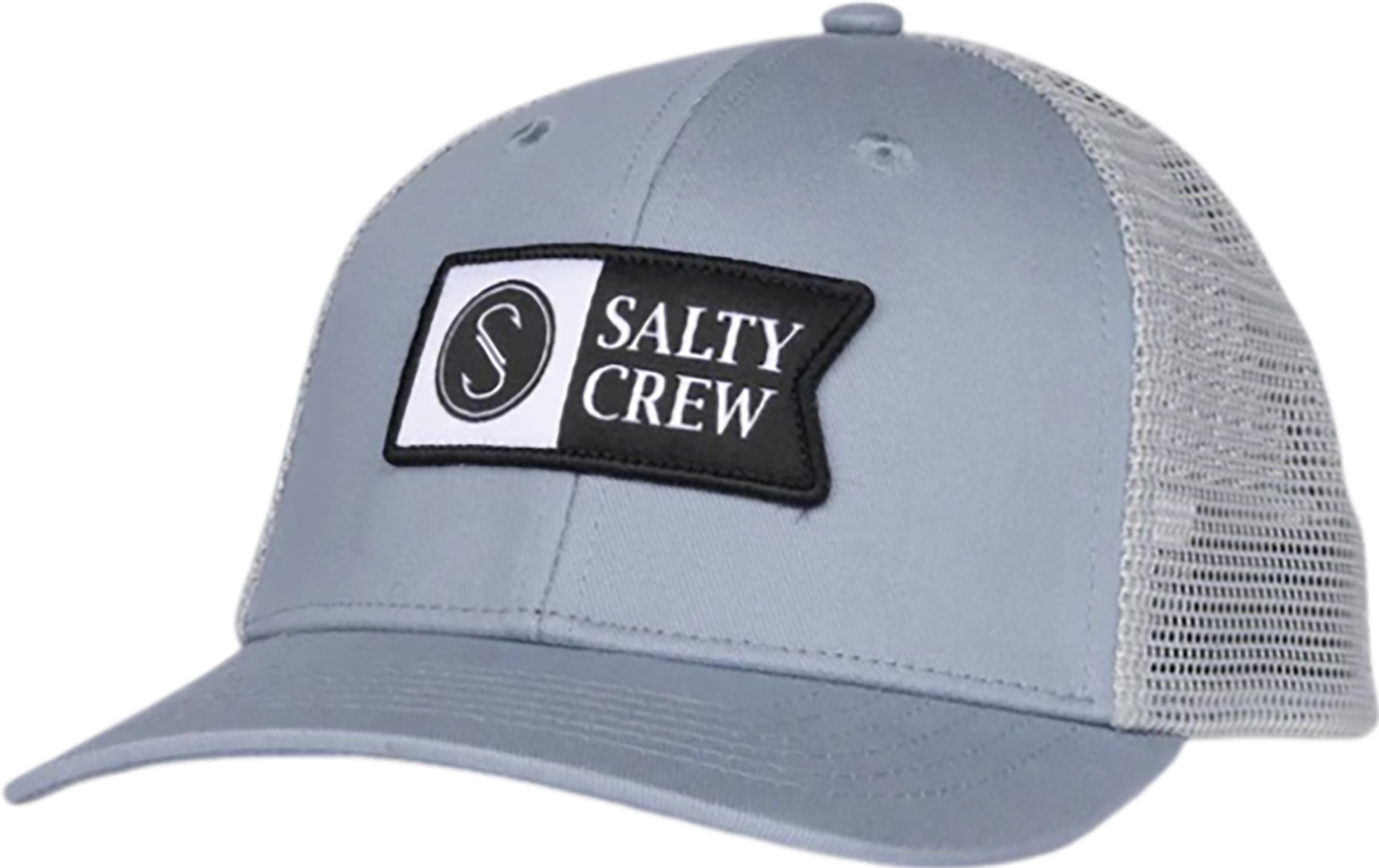 The snapback Pinnacle Retro Trucker Hat features a mesh body, a woven patch on the front and a demi curve brim.