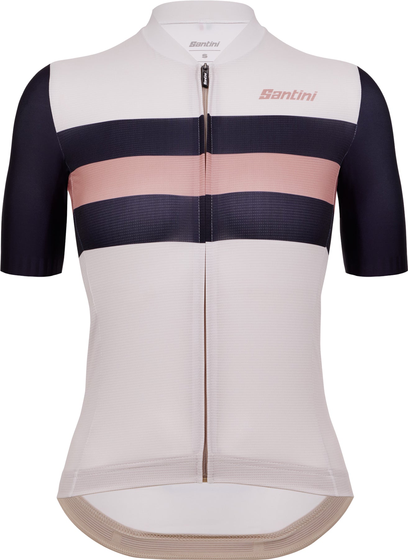 If you wonder how a pro race jersey should fit, look no further. Made with eco-friendly recycled materials, and anatomically cut for women, this aero-light jersey is perfect for your racing season. Made with recycled fabrics coming from PET and waste yarns featuring a fresh feel on the skin. This jersey is one of the small steps Santini does every day for a more sustainable future. Sleek fit with raw cut sleeves, raw cut low profile collar and shaped contrast colour silicon gripper on the cuffs for enhanced aero performance. This is the same jersey that the leaders of le Tour de France wear. Long covered zipper for great comfort and thermal regulation in the hottest days. Triple rear pocket to take what's essential with you. Elastic with silicon gripper at the waist to keep the jersey always in place while pedaling.