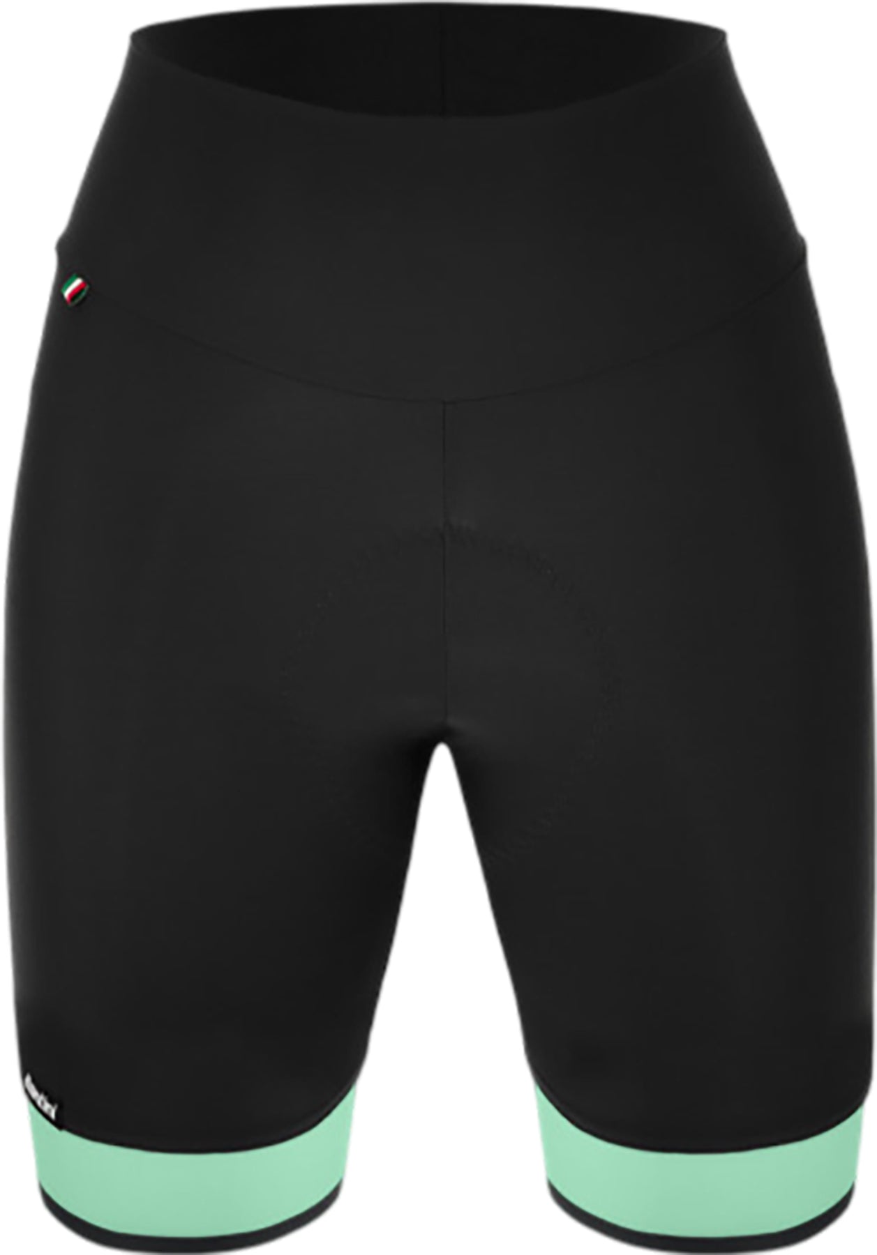 Unbeatable comfort medium compression shorts. Perfect to match with your favourite Santini jerseys to ride all summer long. Made with high elasticity, compact Italian fabric with power compression technology. It provides medium compression without being restrictive. Incredibly durable it retains its features through time. Printed leg gripper to keep the bib shorts always in place. High waist band that follows your body contours without constraining. Designed to make you feel confident. GILevo chamois with gel core that absorbs shock steadily and gradually for comfort on medium to long rides. Designed for women.