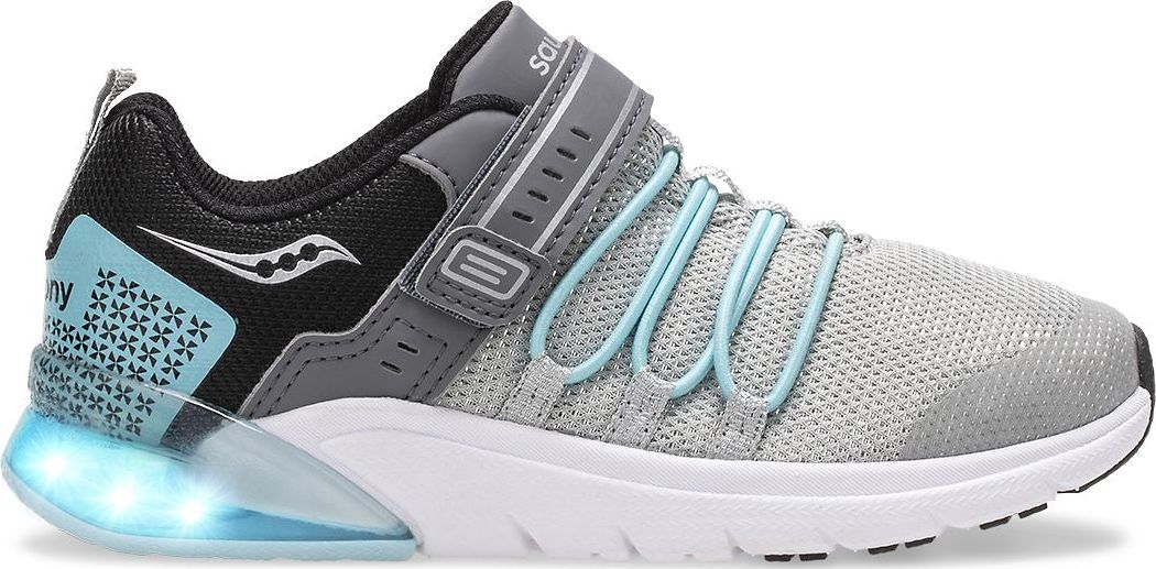 Light up their world with Saucony’s Flash Glow sneaker. Light beams from the durable and lightweight outsole with every cushy step while an anti-stink lining keeps racing feet fresh and an easy alternative closure lets them do it on their own. Plus an on/off switch on the lighted outsole!