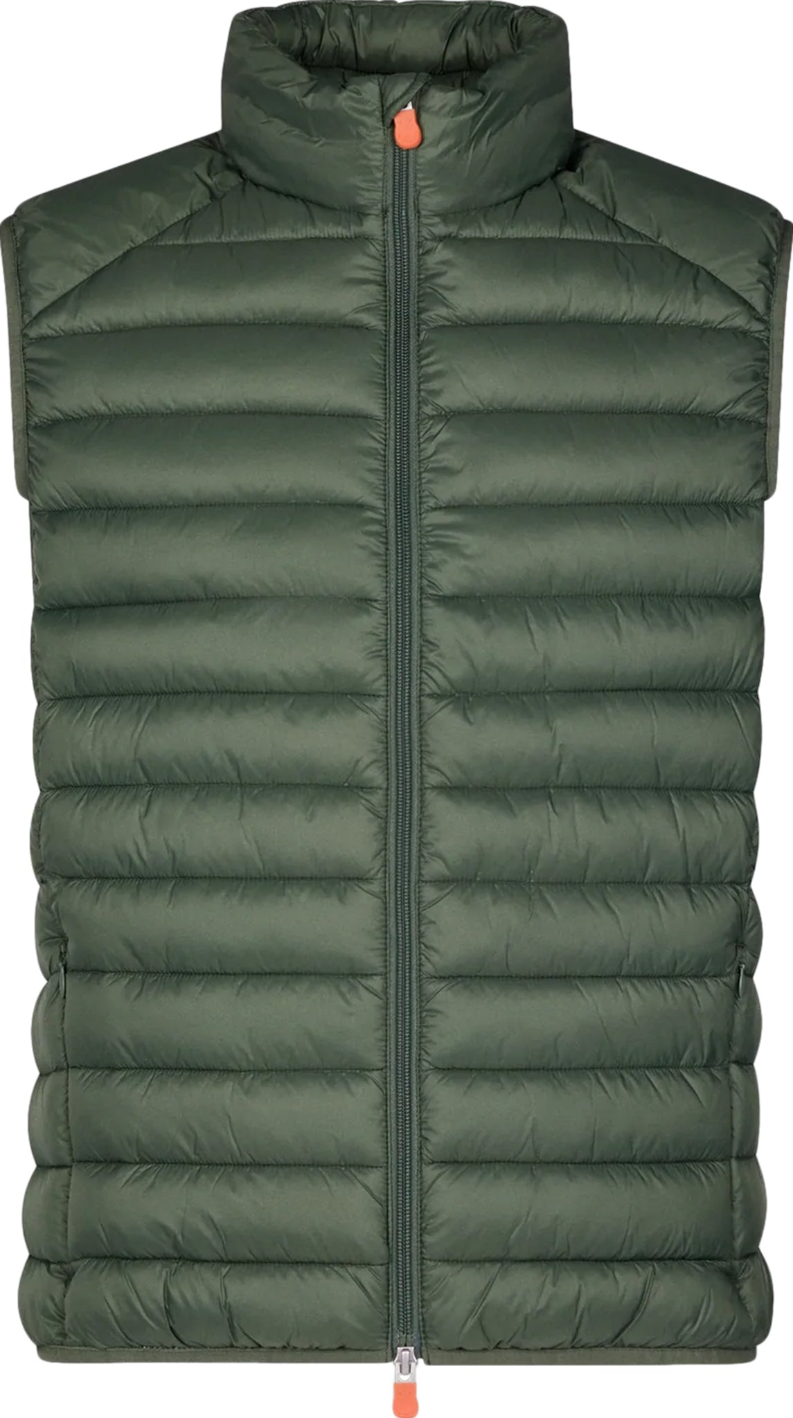A padded, quilted vest made with 100% soft high density nylon fabric with a standing collar.