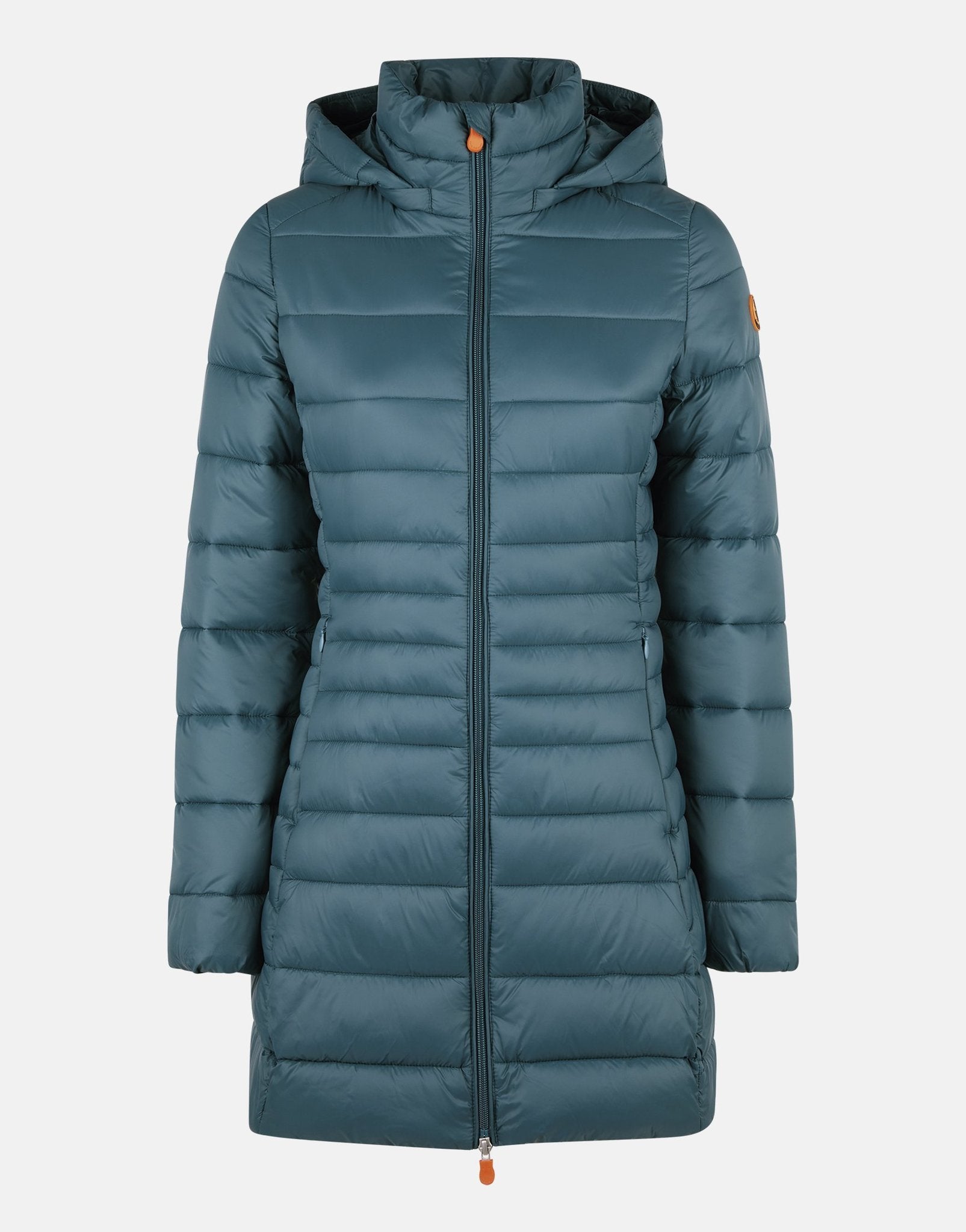 This long synthetic down jacket features soft, compact lines. Thanks to new and improved materials, this timeless Save The Duck basic is more durable than ever before. The ultra-high-density nylon fabric (20D x 20D) is extremely soft and lightweight. Fine yet hardwearing, it guarantees waterproof and windproof protection, absorbs moisture and dries quickly. Fits true to size. This jacket is designed for a slim fit. Take the next size up if you wish to achieve a looser fit.