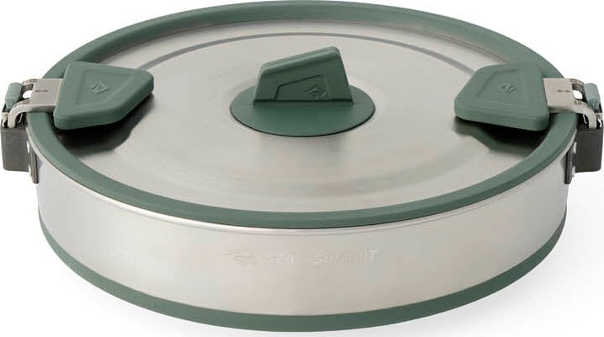 Induction-compatible, collapsible stainless steel pots with a three-layer base for even heat transfer form the heart of a great camp kitchen. Dual Click-Safe handles allow you to securely hold, carry and pour from the pots. The handles can be reversed to secure the lid(And any nesting tableware)during transport. A detour means sometimes taking the longer way on your journey; Detour cookware means you're the kind of person who doesn't cut corners.