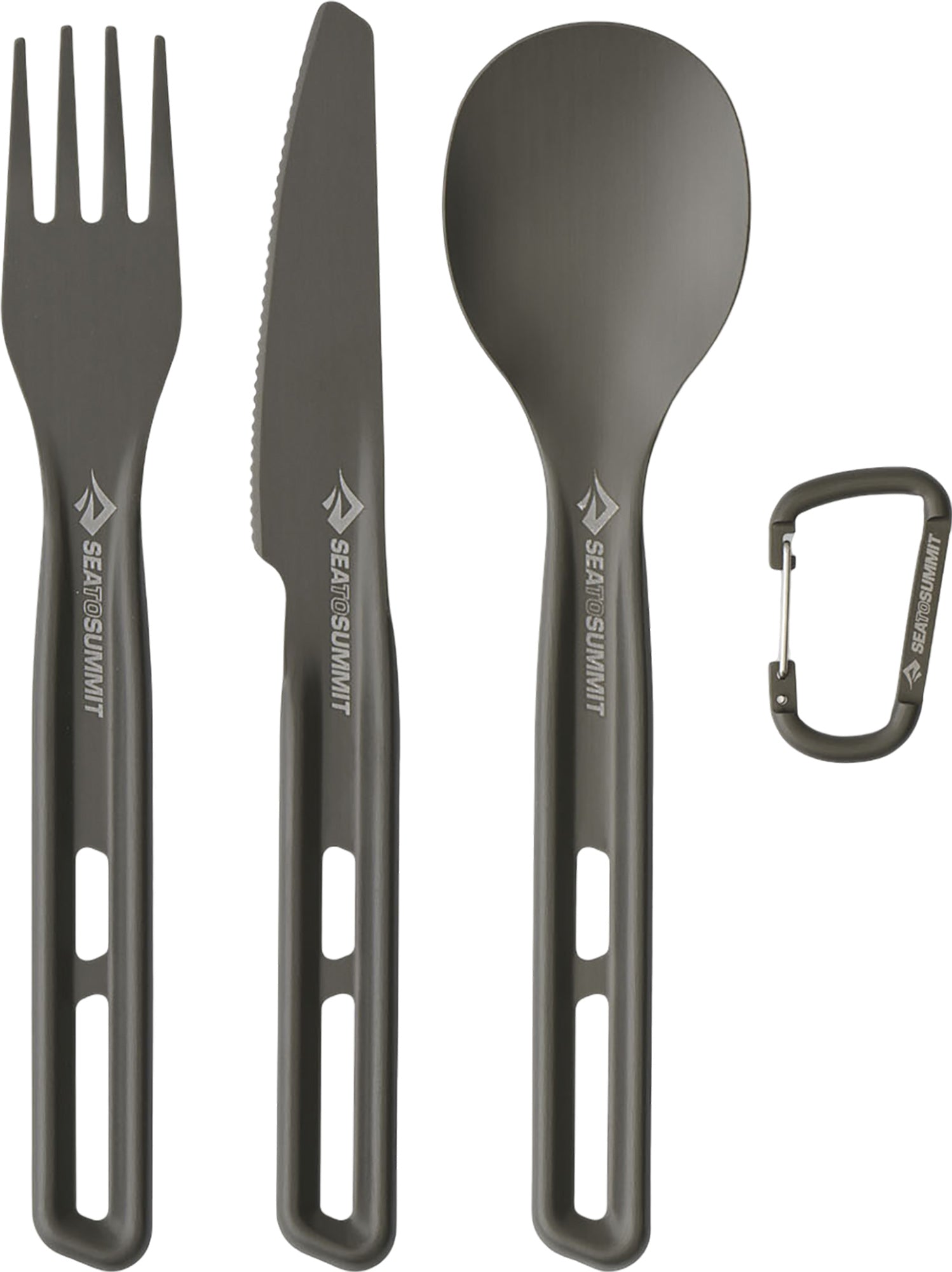 The Frontier Ultralight Knife, Fork and Spoon Cutlery Set is an ultra-lightweight and durable addition to any camp kitchen. Its traditional size and shape brings a little bit of home with you wherever you need it, while the aircraft-grade aluminium is hard anodised. This makes it super long-lasting and lightweight, plus there's no risk of alloy leaching into food.